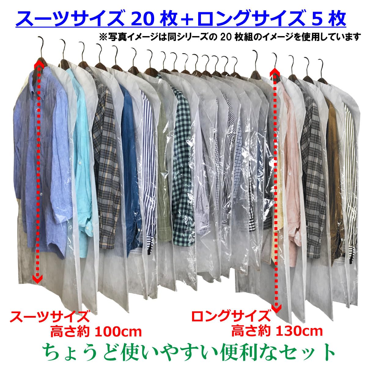 【新着商品】イニコライフ 衣類カバー 日本製 25枚組 洋服 不織布 カバー 通常サイズ20枚+ロングサイズ5枚 クリアタイプ 前面はハッキリ見えるクリア素材 背面は通気性の良い不織布素材