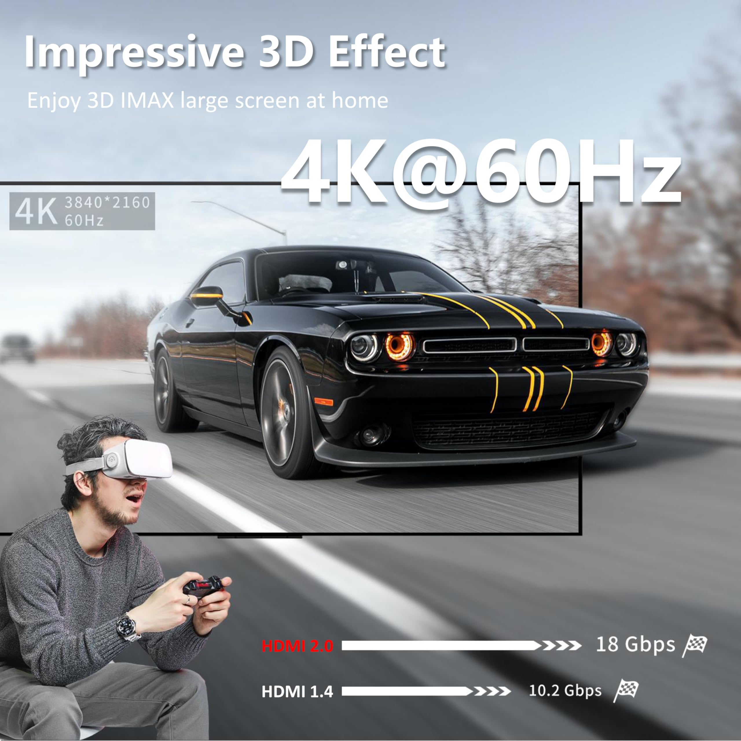 4K@60Hz・2K@144Hz・2K@165Hz・HDR・HEC(イーサネット通信)・フルHD・3D映像・ARC(双方向音声)・CEC(基本リンク機能)・高速伝送18Gbpsなどに対応しています。