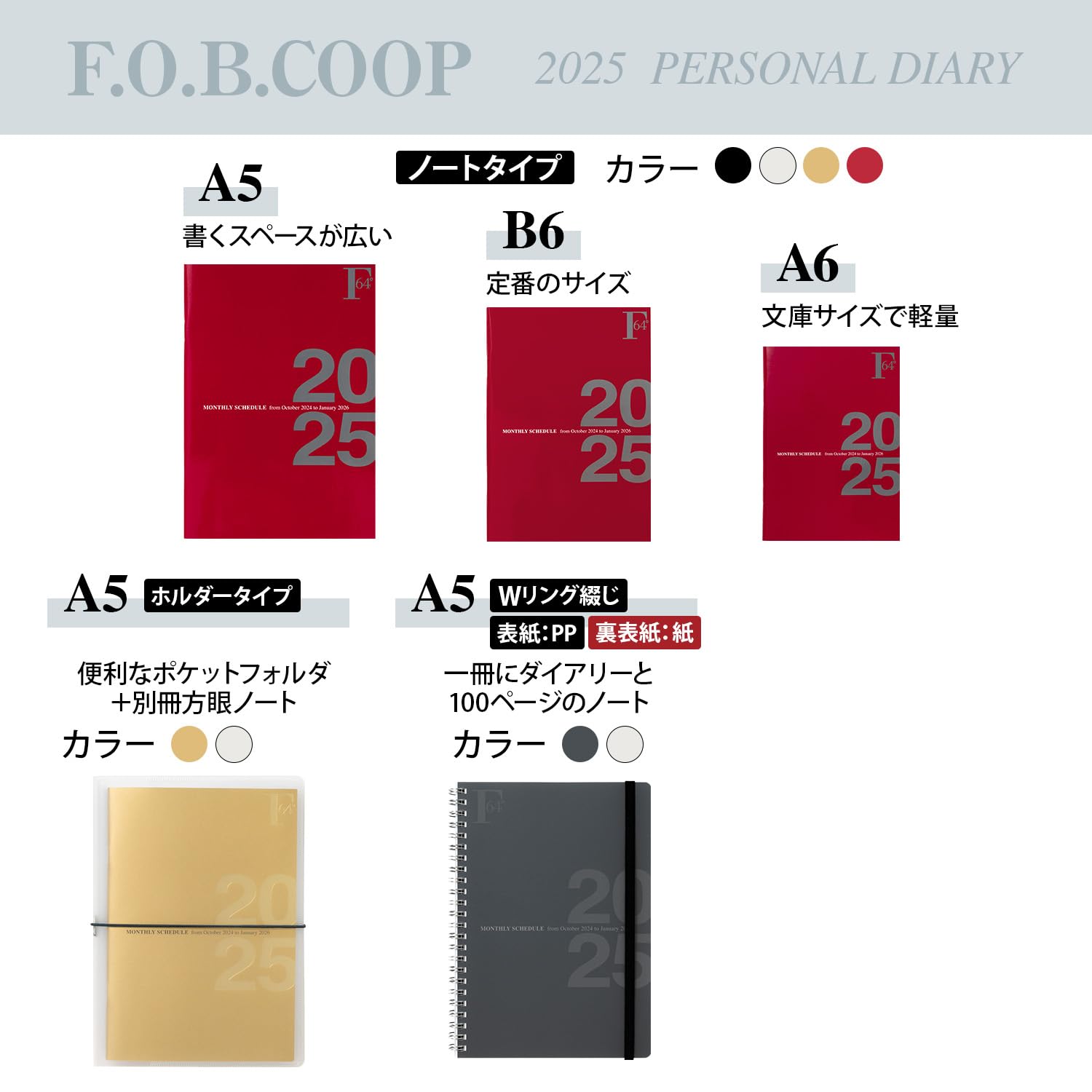 【在庫セール】キョクトウ 手帳 2025年 2024年10月始まり FOBCOOP A5 マンスリー 濃赤 PBF48DR25