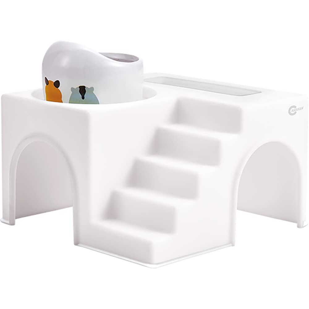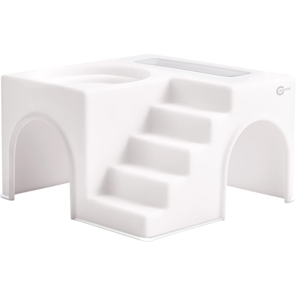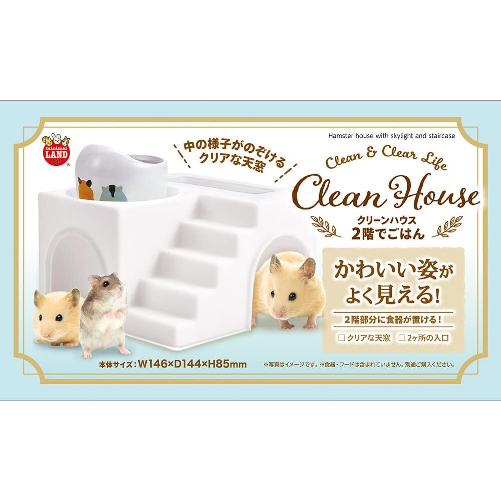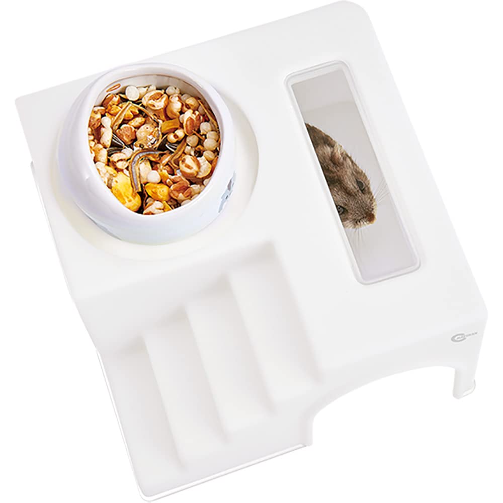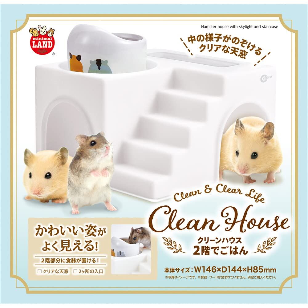 2階部分に食器が置ける、階段付きのハムスターハウスです。天面の透明窓から、中の様子を覗くことができます。