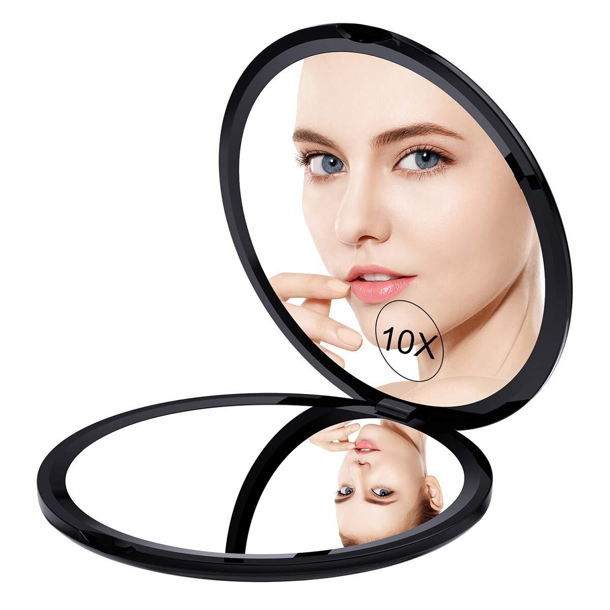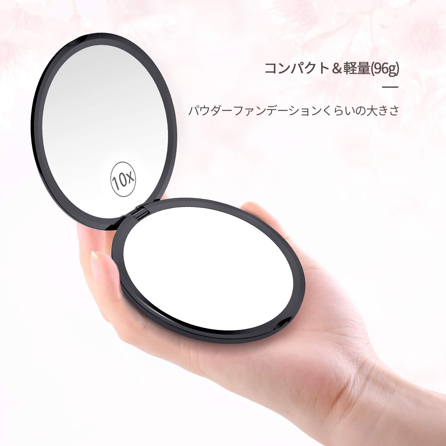 Gospire ミラー 鏡 10倍拡大鏡付 両面コンパクトミラー 拡大化粧鏡 コンパクトメイク携帯 両面鏡 折りたたみミラー 角度調整可 敬老の日ギフト・プレゼント 老眼の方に優しい ブラック