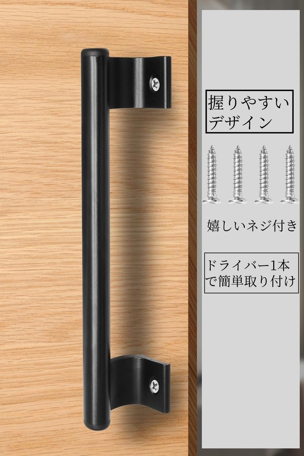 【握りやすいドアハンドル】大きめのドアハンドルなので、握りやすく、ドアの開け閉めをしやすくすることができます。取っ手が小さくて開けにくいドアや、取っ手のないドアを楽に開けやすくしてくれます。