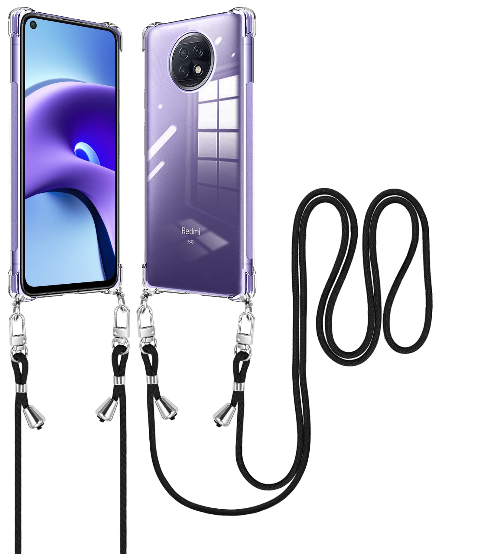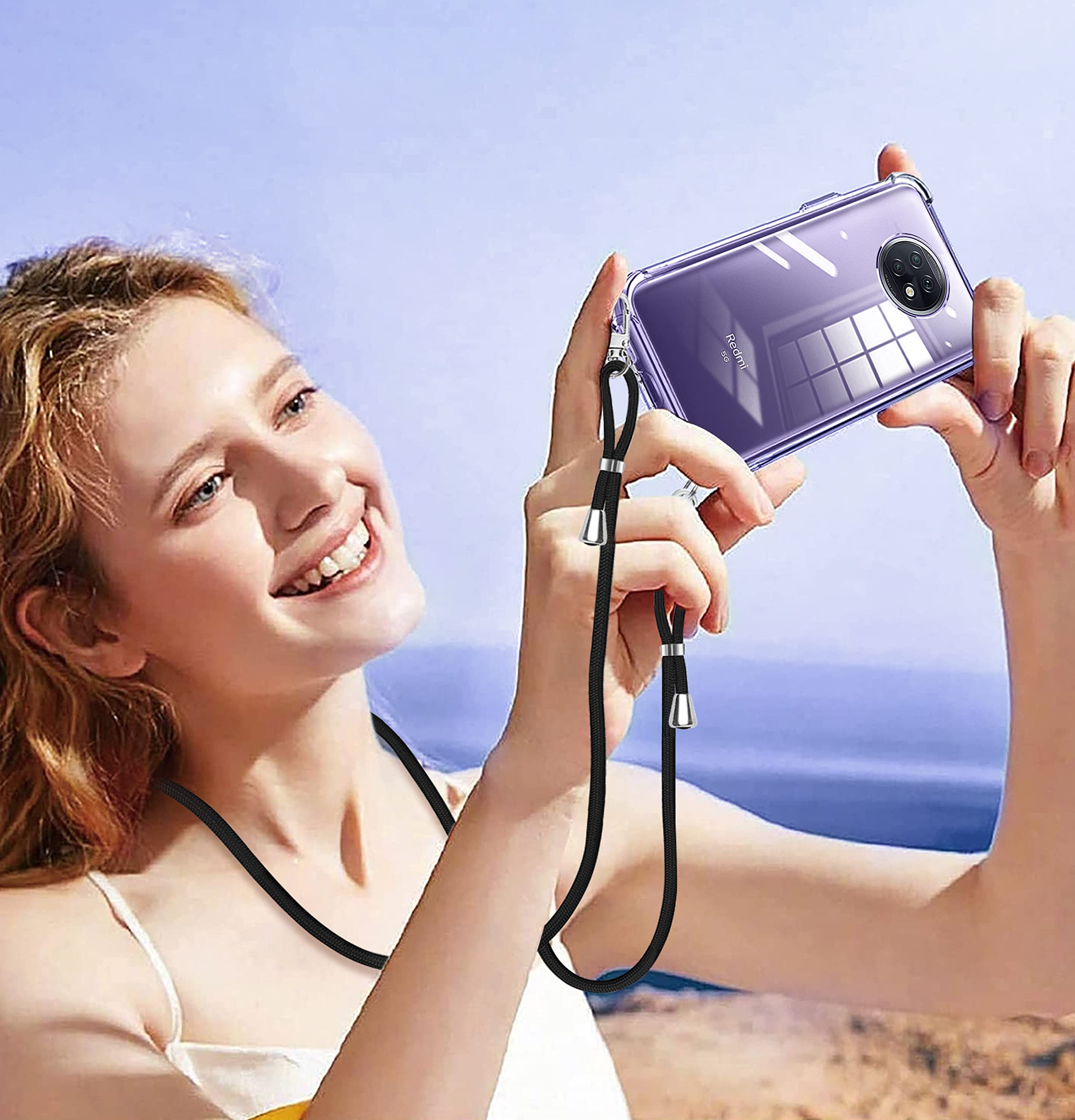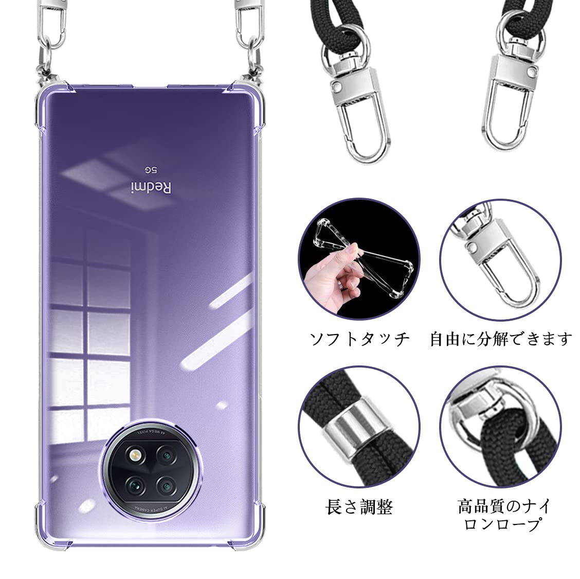 Xiaomi Redmi Note 9T 5G ケース ショルダー クリア Redmi Note 9T スマホケース シャオミ Redmi Note 9T カバー ストラップ付き TPU 肩掛け 斜めかけ 縄掛けケース 縄掛け 薄型 軽量 長さ調整可能 取り外し可能 落下防止 紛失防止 【透明】