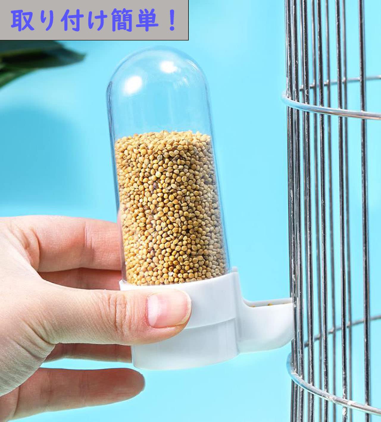 鳥かごに簡単に取り付けられ、自動で水や餌が下がってくるので、留守中も安心です。