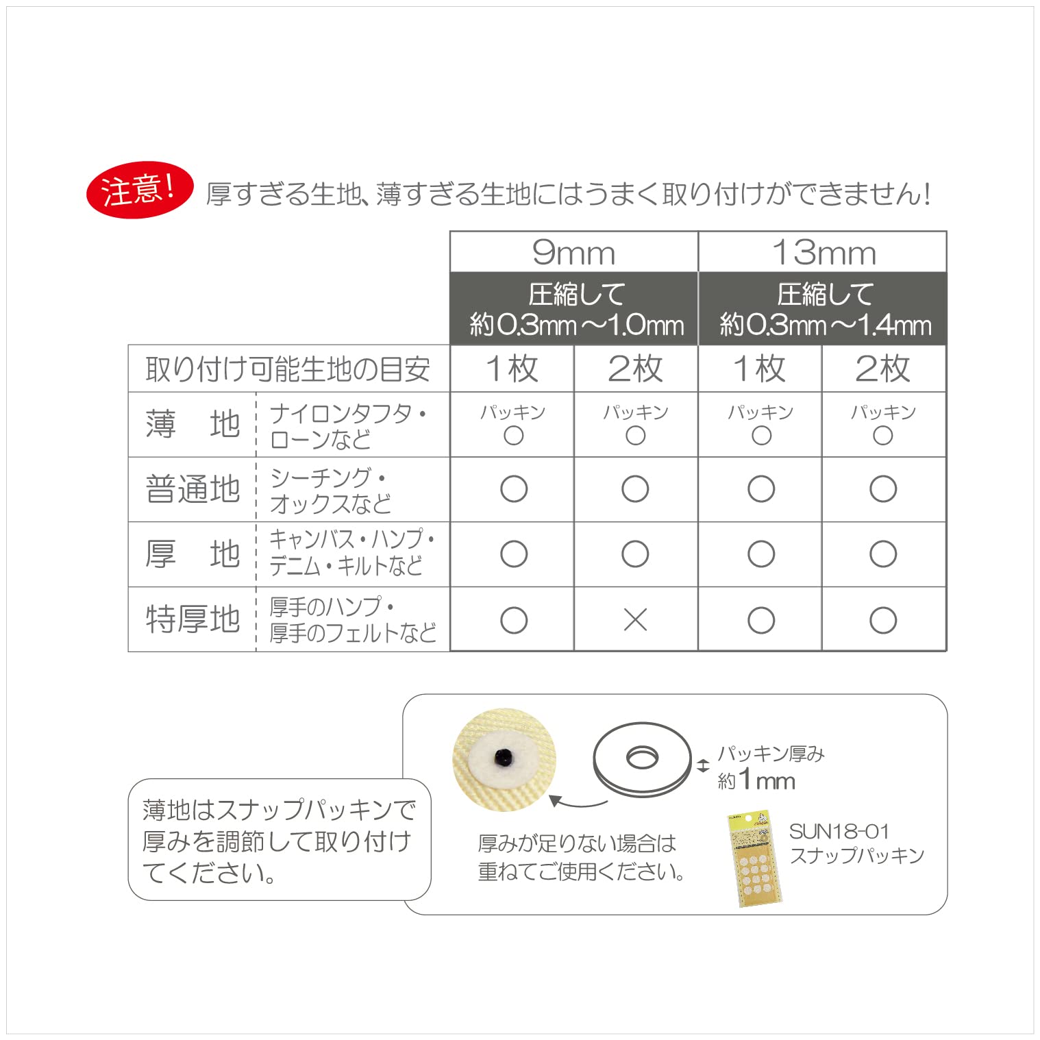 針や糸、打ち具が不要!手で付けられるベーシックタイプの「ワンタッチプラスナップスリム」です。