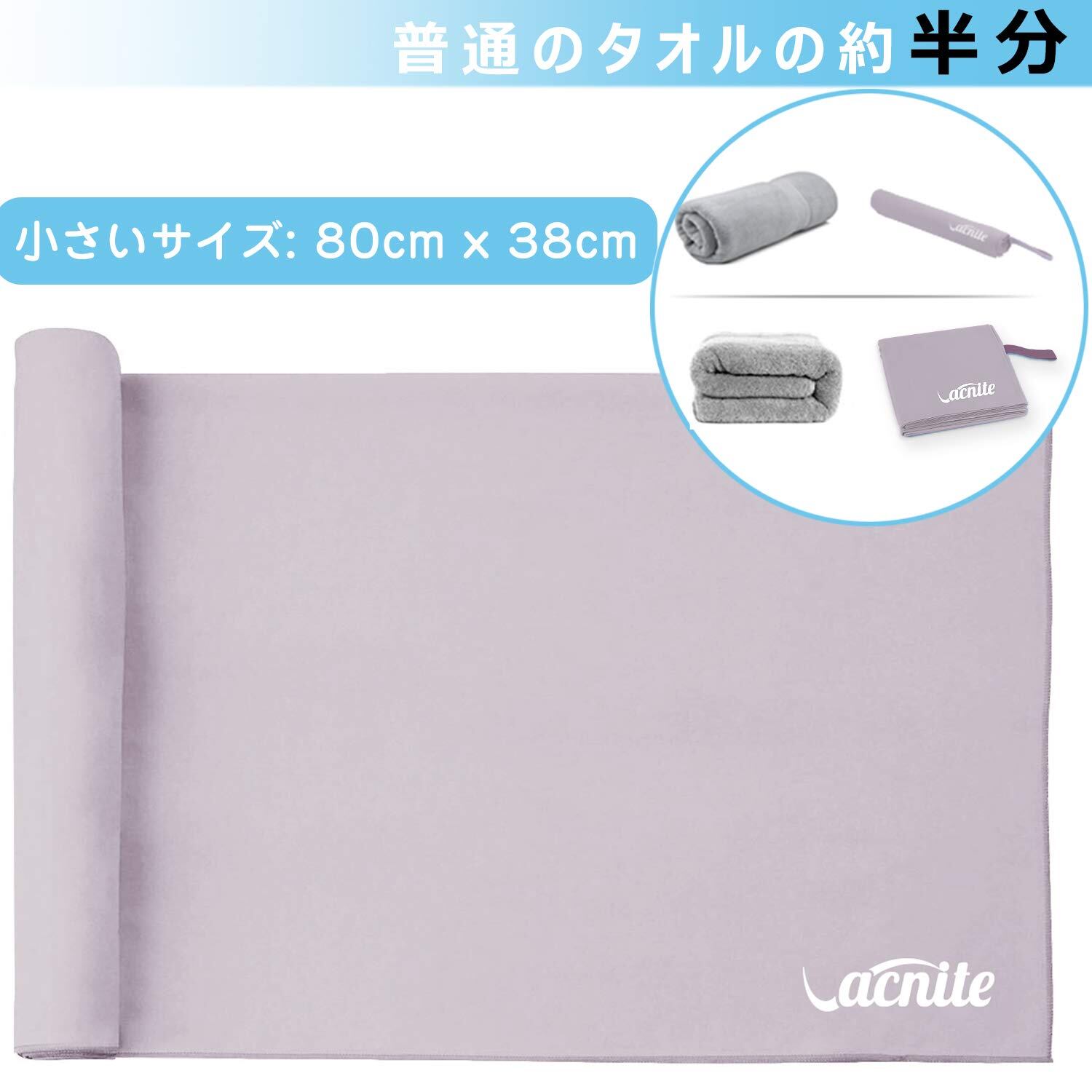 VACNITE 速乾タオル 超吸水 柔らかい 色褪せない 防臭 高い耐久性 軽量 収納袋付き 湿気 梅雨対策 旅行タオル バスタオル 水泳/スポーツ/旅行/家庭用 (グレー 80*38cm)