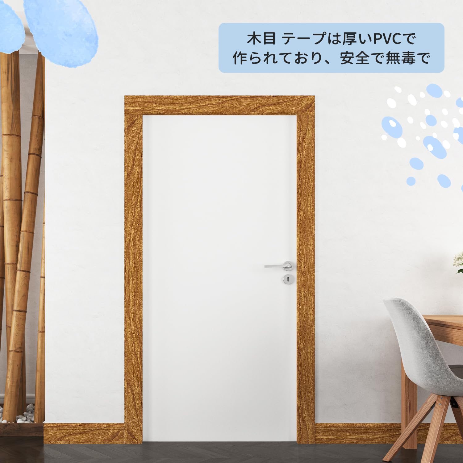 【耐久性、防水 防油 防汚】幅広マスキングテープは優れた強化PVC素材を採用して、耐摩擦性や耐久性が優れています。木目調テープは防水・防汚・防カビ性に優れてい、清潔で簡単です。貼り付けた後、木目調マスキングテープの表面に汚れがあれば、濡れたタオルで拭くだけで、壁や家具を効果的に保護します。