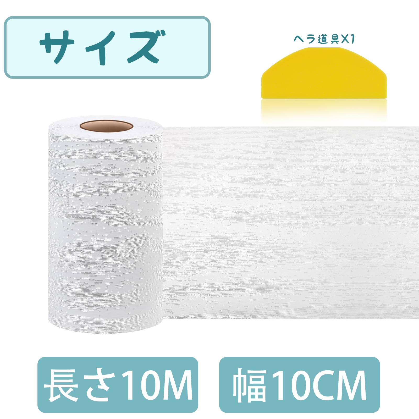 【色】:ホワイト 木目調 【サイズ】:長さ10M x 幅10CM( 幅には±0.5 CMの誤差がある。 ) 【素材】:安全無毒厚手PVC素材