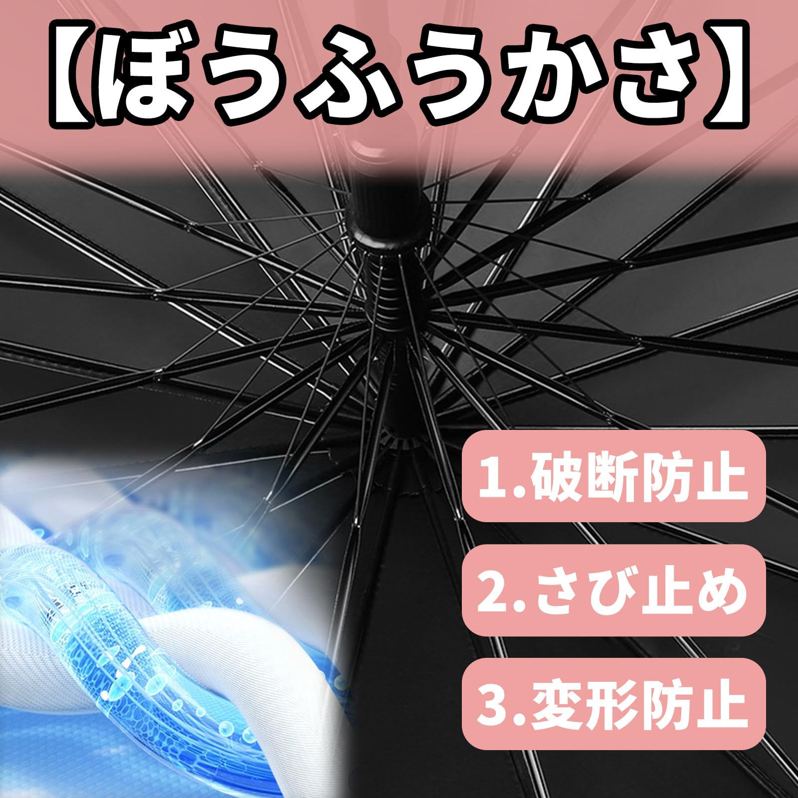 【耐久性に優れ、曲線が美しい16本骨傘】その美しい16本の骨は柔軟で丈夫なグラスファイバーを採用し従来の8本骨の2倍の16本骨にすることで今までにない強度と耐久性を実現。強風にあおられても、安易に折れたり曲がったりする心配ありません。