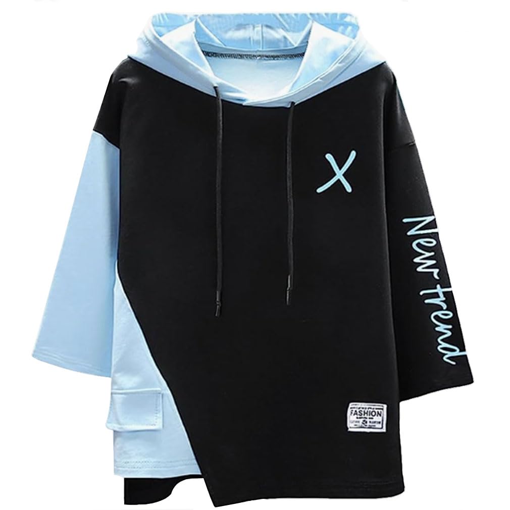 [SUKESEM] パーカー メンズ 半袖 七分袖 tシャツ おしゃれ 大きいサイズ フード付き ゆったり スポーツウェア カジュアル プルオーバー