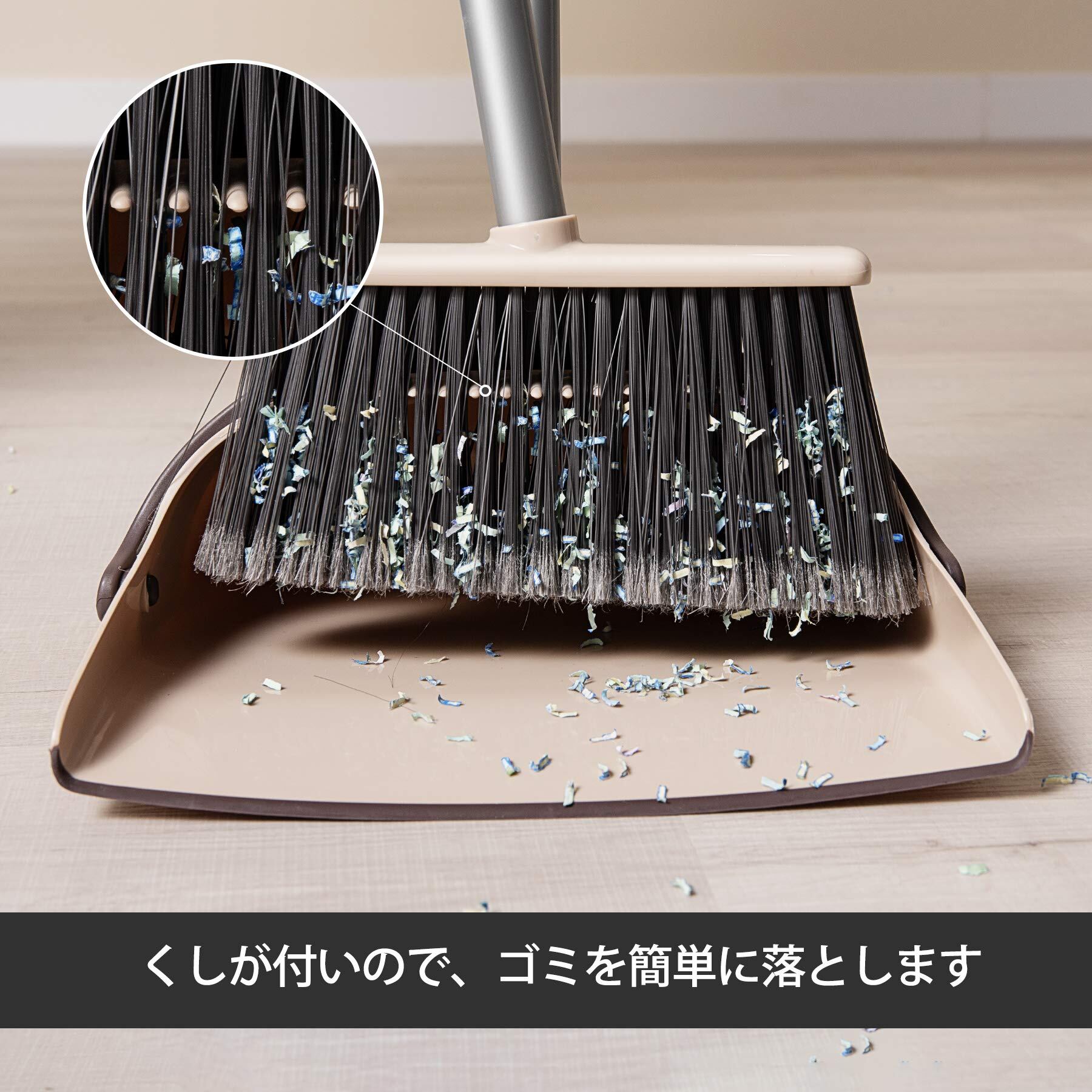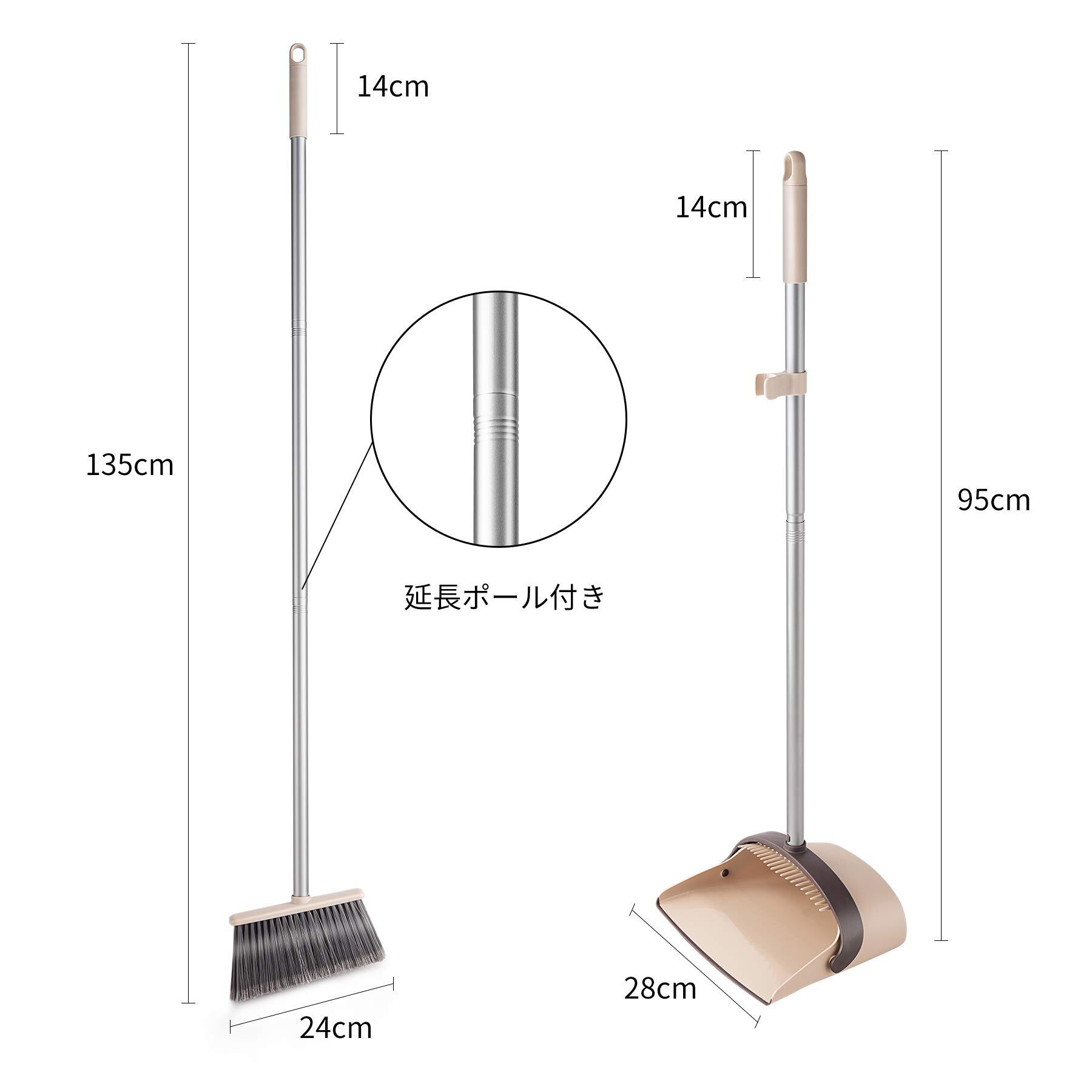 Eyliden. ほうき ちりとり 掃除セット 自立式 収納に便利 掃除道具 長柄 長さ調整可 94cm-135cm 室内 玄関 ホーム 美容室 ショップ最適 (ベージュ)