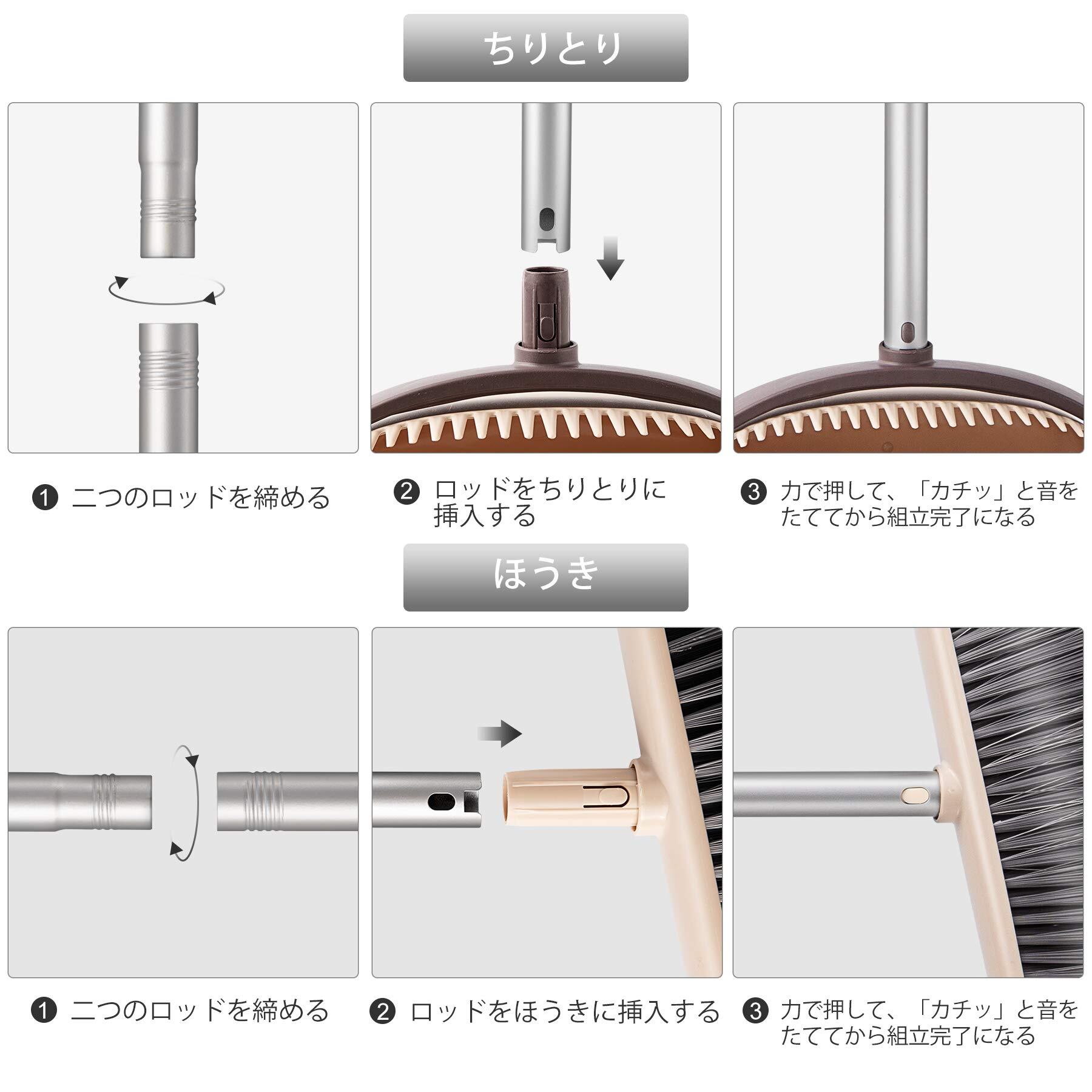 【本体サイズ】:「ほうき」:高さ94-135cm 「ちりとり」:高さ95cm 材質:鉄、PET、PP樹脂。