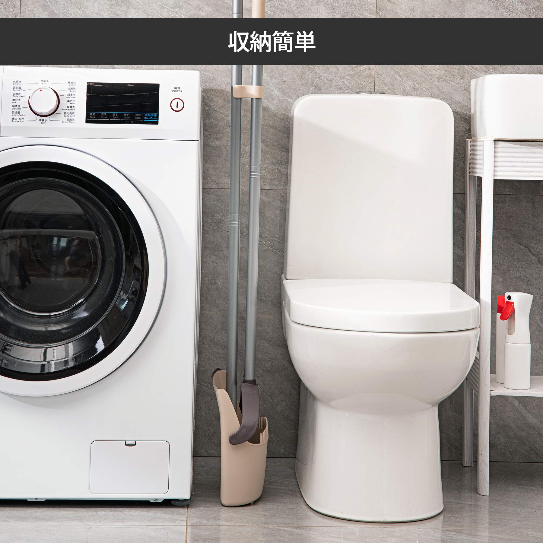 【収納簡単】:ちりとりにはノブが付いて、スーツが立て式になって狭いコーナーに収納でき、ゴミも落なくなります。持ち手部分にはフックを通せる穴が開いていますので、使わない時は壁に掛けて収納もできます。