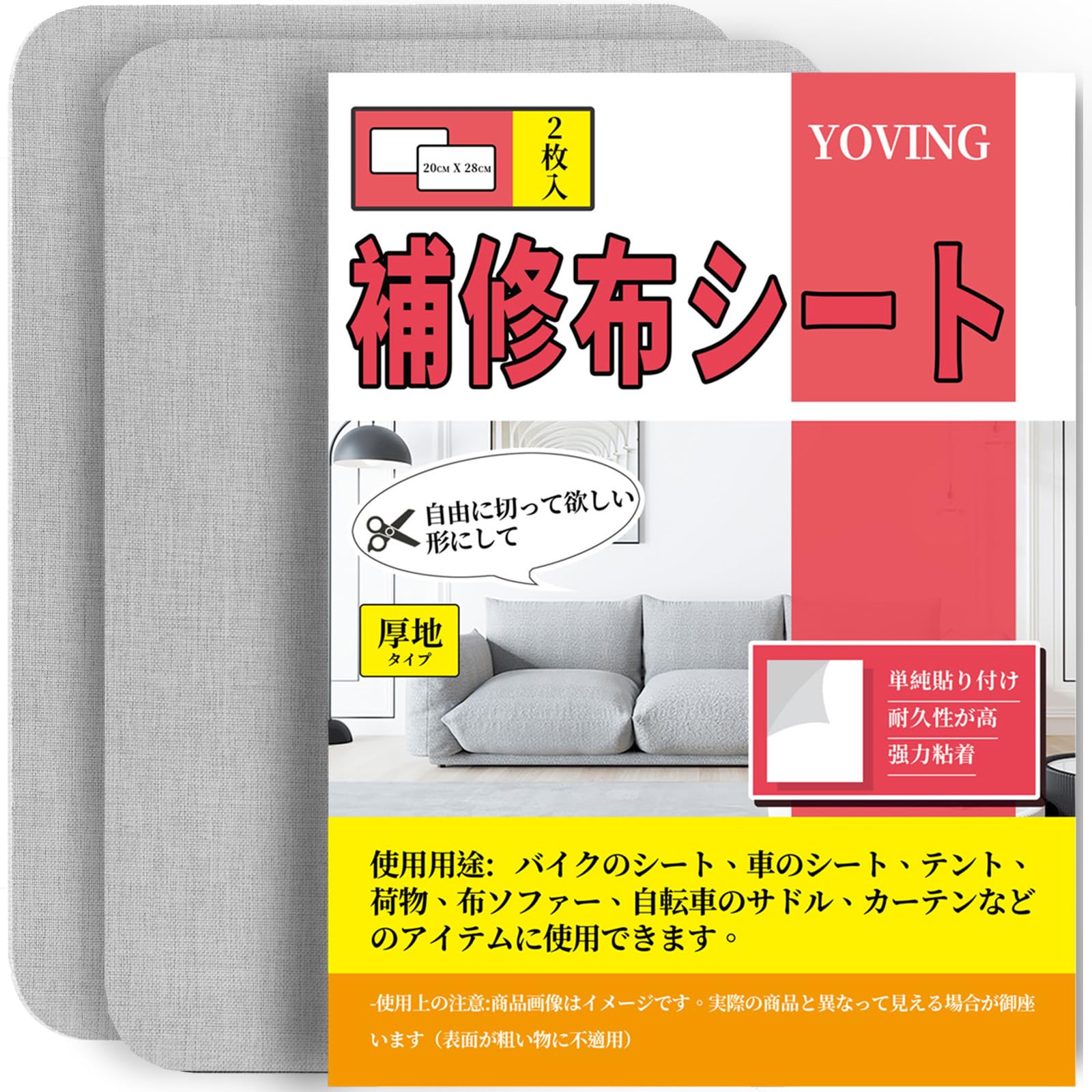 【各種織物に適用】:補修シート布 は亜麻、ビロード、毛皮、綿、皮革、ナイロンなどの織物と完璧に組み合わせる。ソファ、テント、車のシート、ハンドバッグ、荷物、カーテンなどのアイテムに使用できます。(表面が粗い物に不適用)