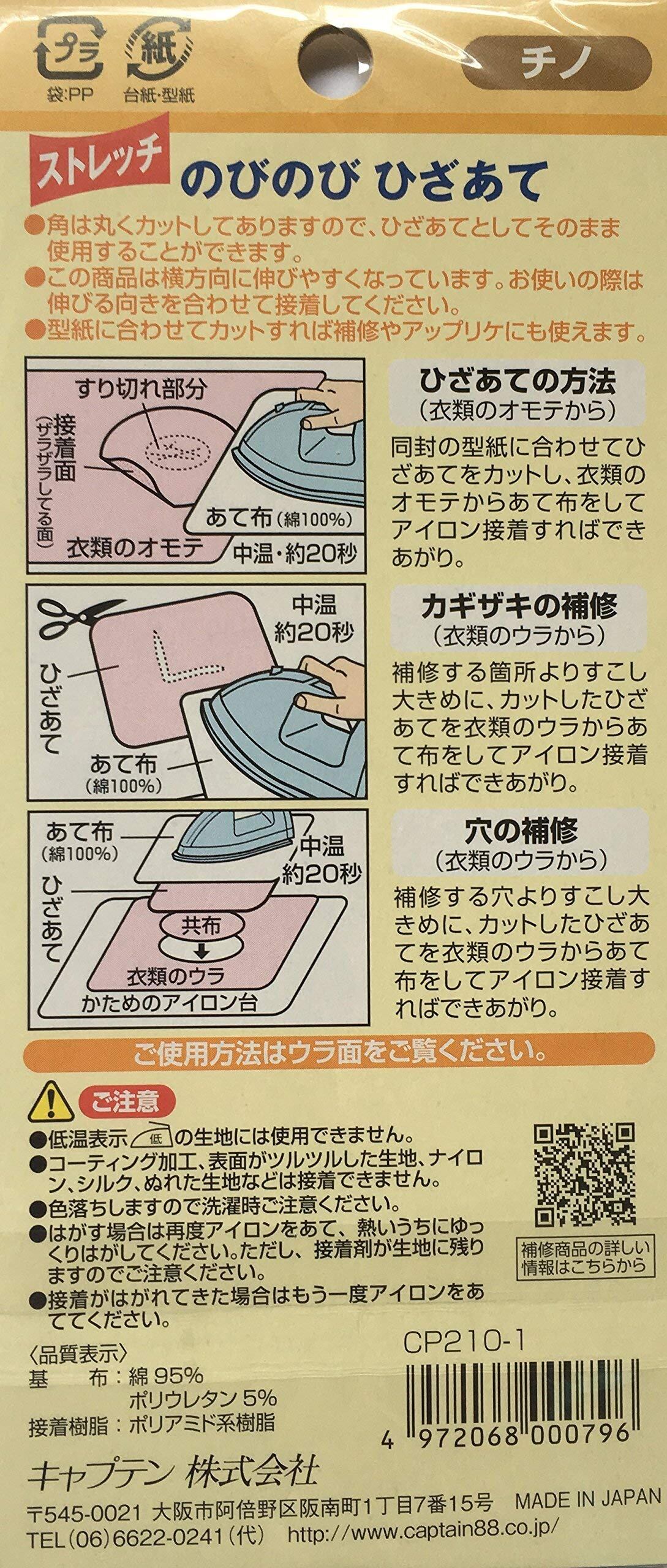 CAPTAIN88 キャプテン 簡単補修シリーズのびのびひざあて(ストレッチチノ) 巾10cm×15cm 2枚入り #1 ベージュ アイロン接着CP210