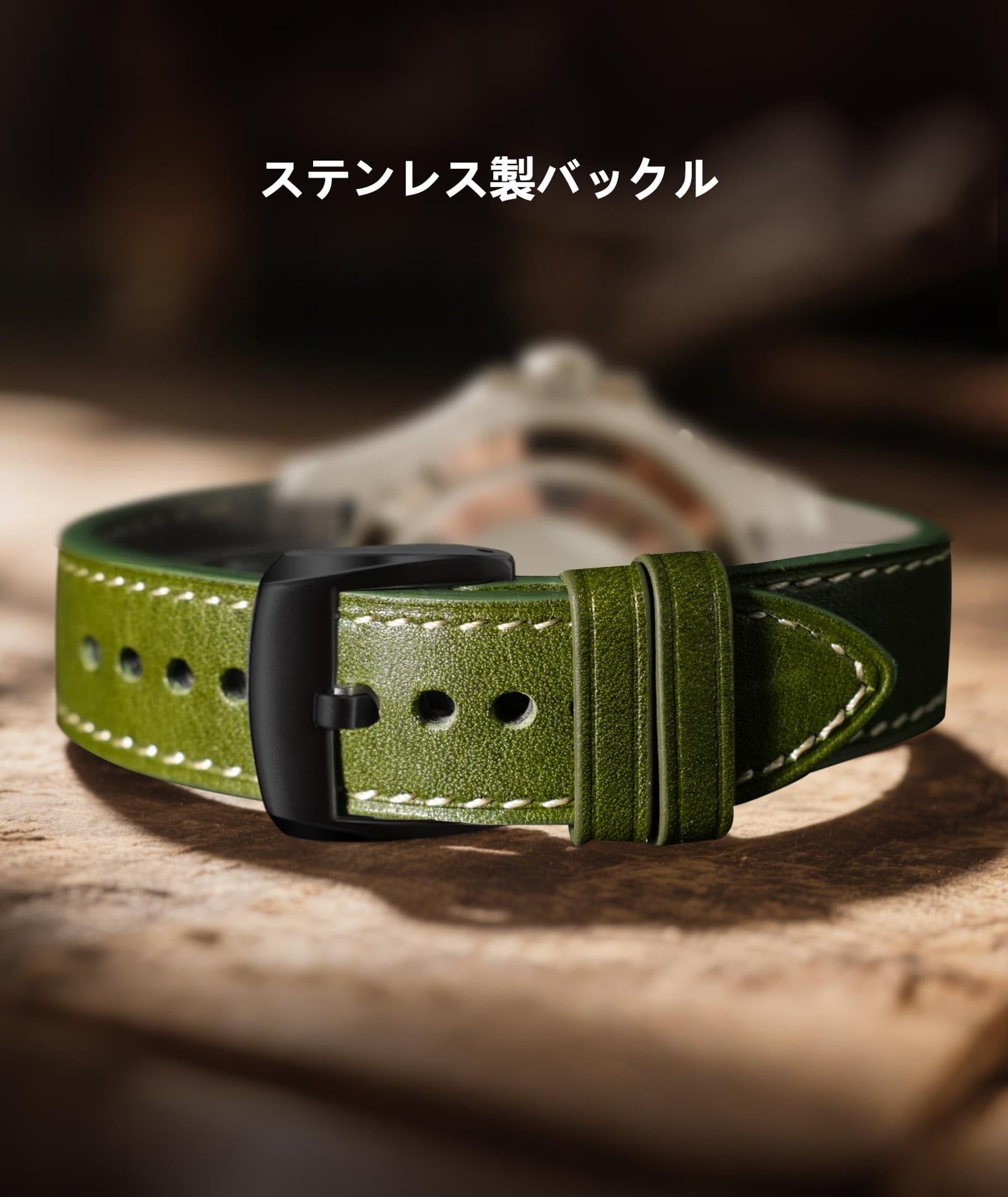 プレミアム素材:レトロスタイルの美しさを備えたプレミアムフルグレイン革時計バンドは、素晴らしい装着感を提供します。20mm、21mm、22mm、24mmの4サイズからお選びいただけます