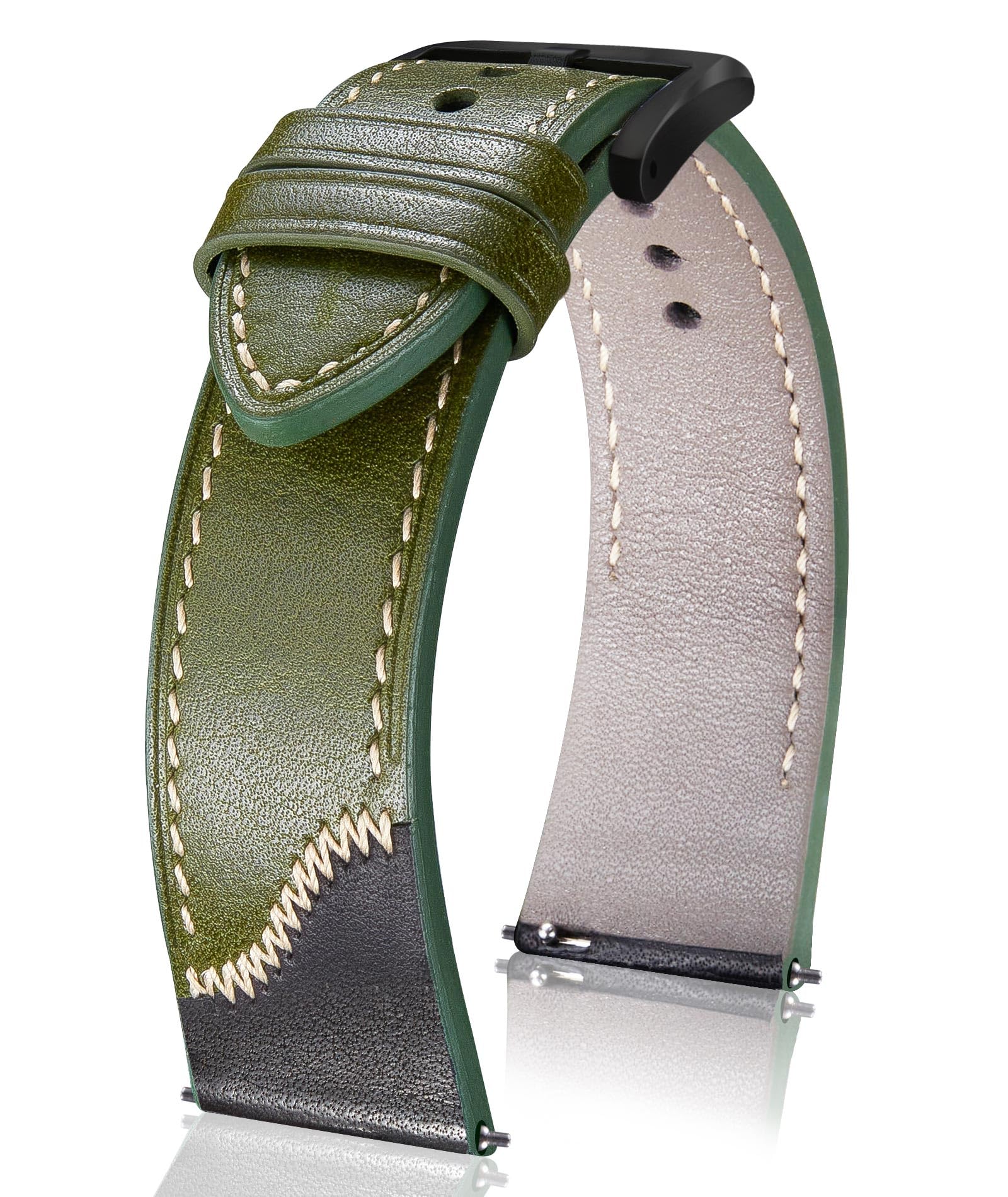 [BINLUN] 革時計ベルト 20mm 21mm 22mm 24mm 手作りレザー腕時計バンド クイックリリース レトロ 2色のパッチワークデザイン 交換用ウォッチバンド 男女兼用(22mmグリーン/ブラック)