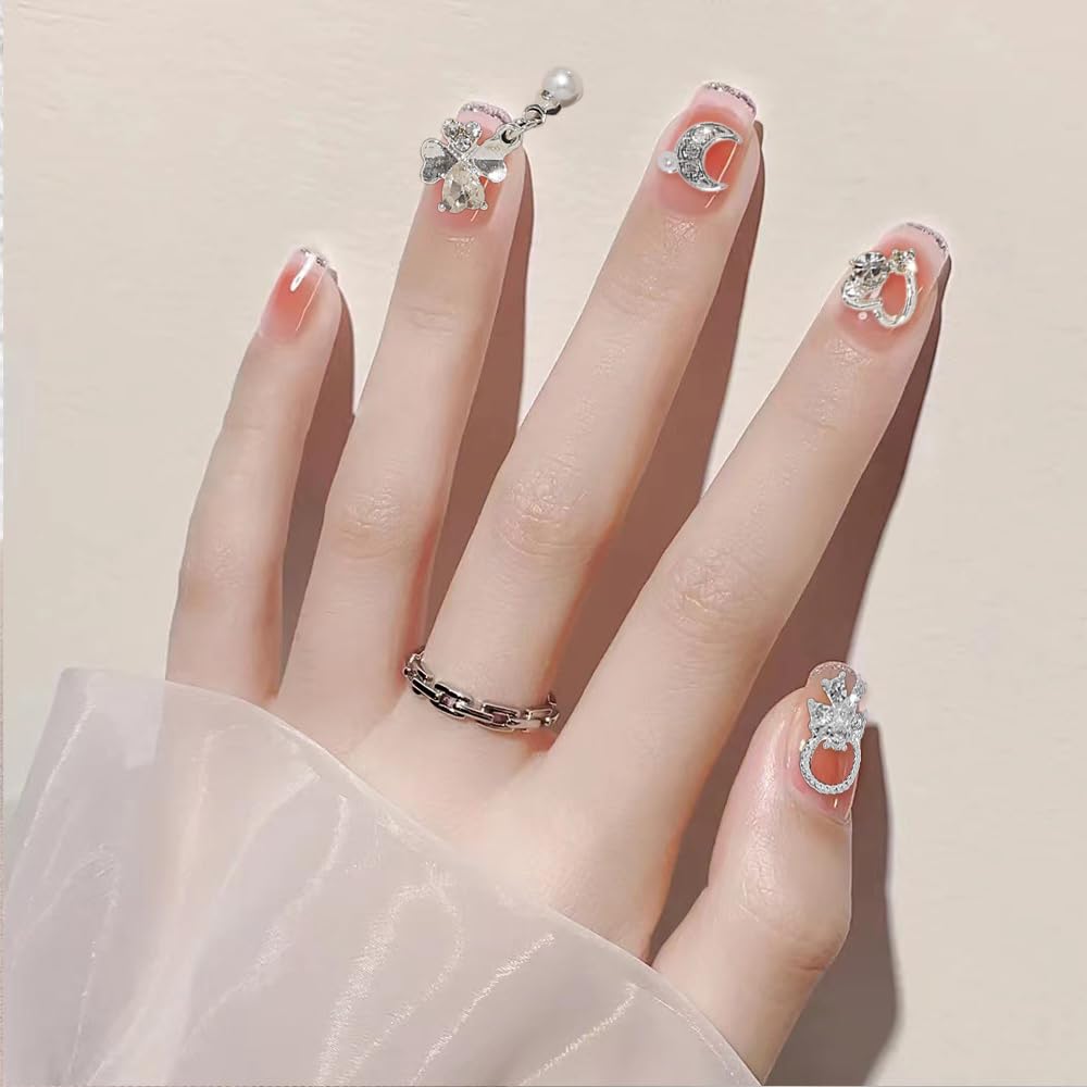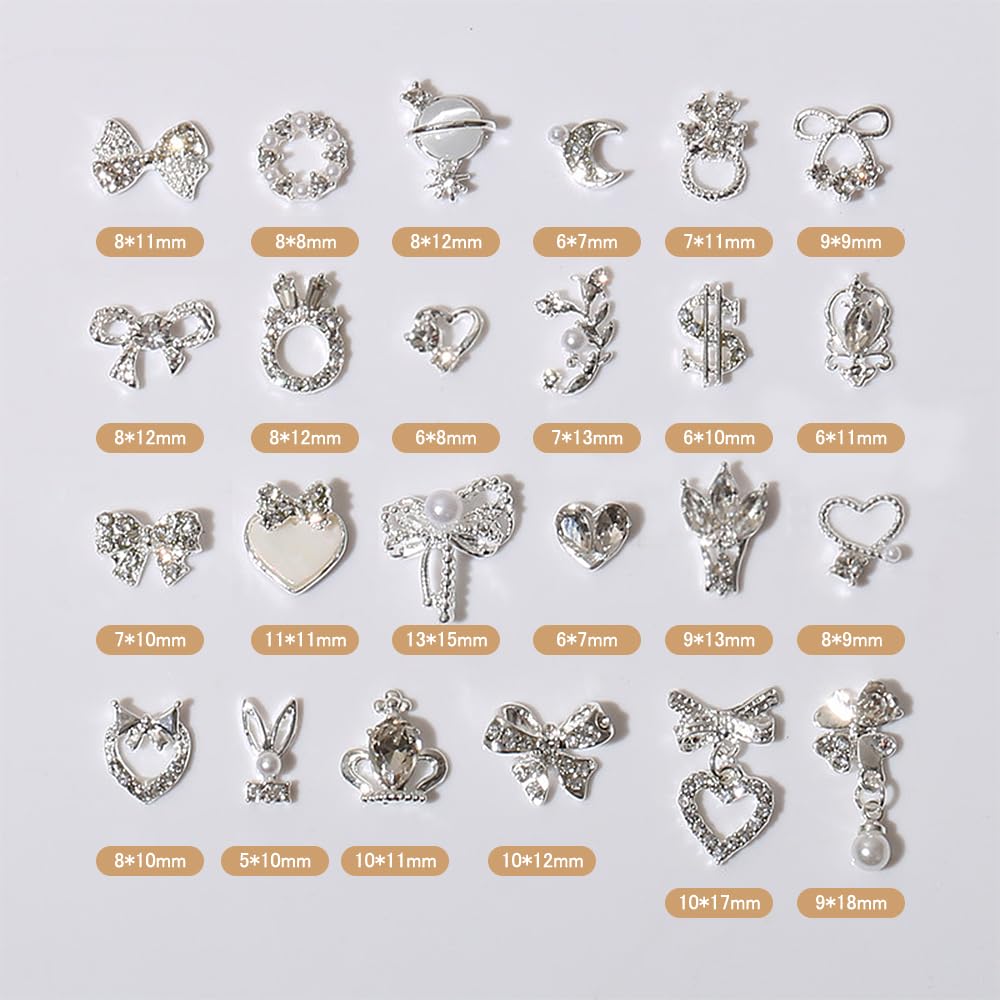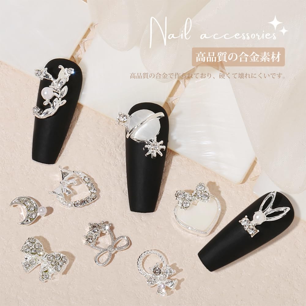 5.【幅広い用途】これらのシルバーネイルチャームは、ネイルアートだけでなく、携帯電話ケース、バッグ、衣類、靴、DIYクラフト、ジュエリー作りなど、さまざまな装飾にも最適です。