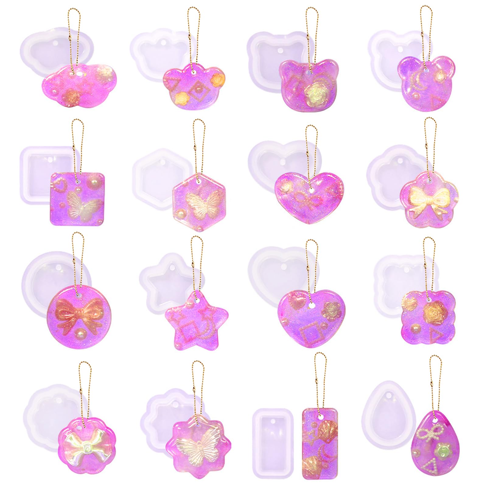 YFFSFDC シリコンモールド レジン 【16個セット】 穴あき ハート 長方形 正方形 多角形 小動物 シェイカーモールド ソフトモールド DIY手作り かわいい ペンダント アクセサリー 装飾 再利用可能(O)