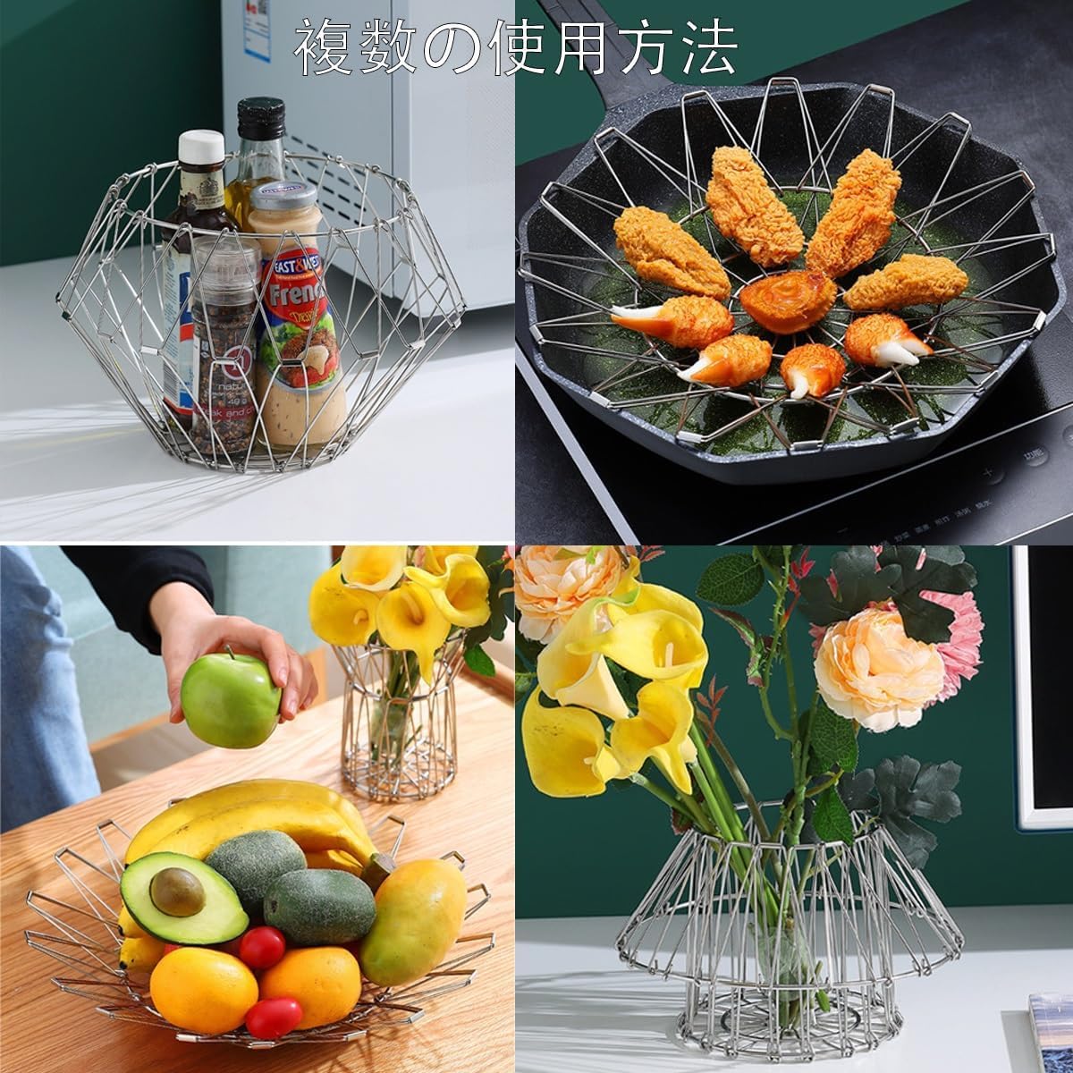 Lyyxjsltd 変形バスケット ステンレス製 折りたたみバスケット ワイヤー 変形カゴ(ゴールド S)