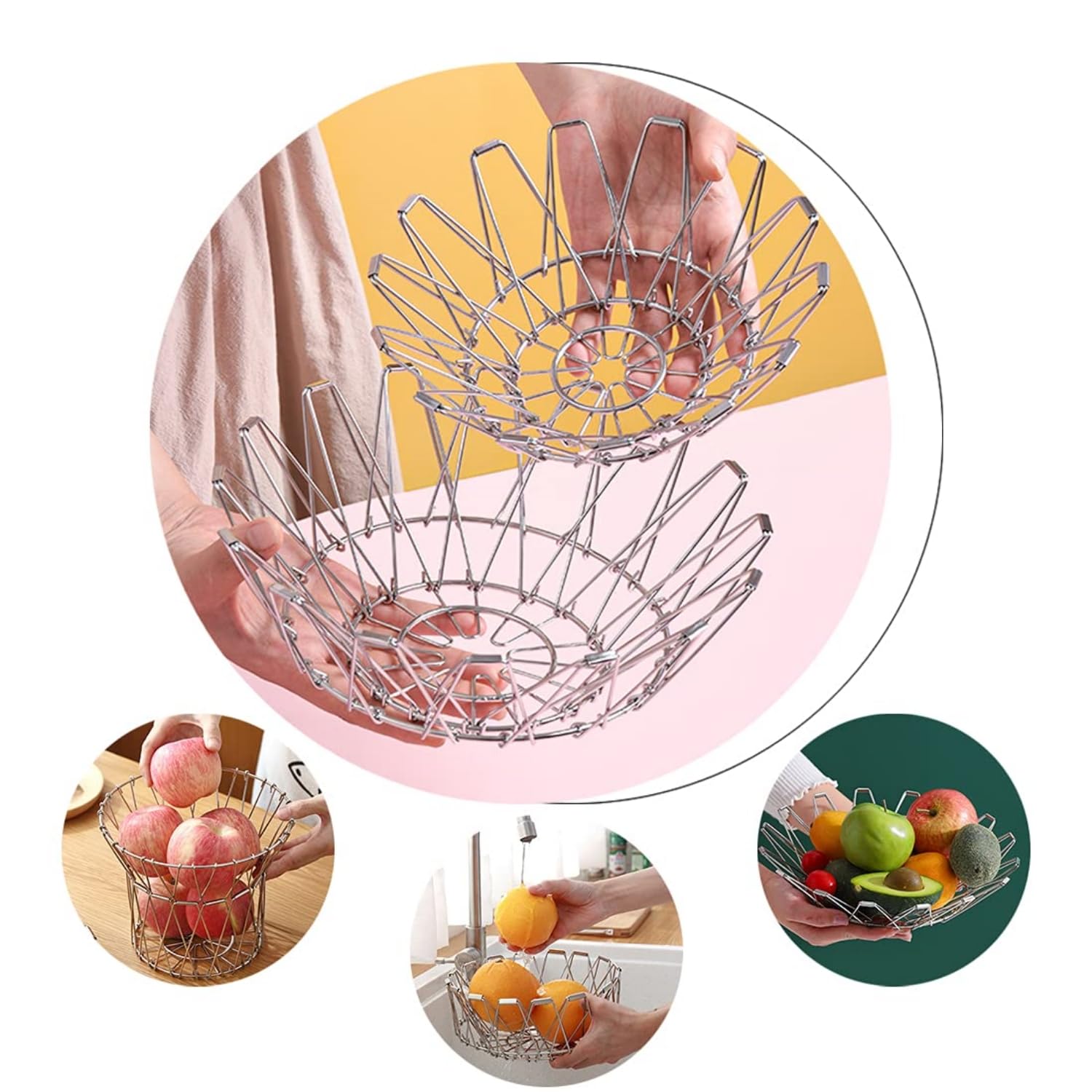 【人気商品】変形バスケット 折りたたみ フルーツバスケット 2個入り【ゴールド、シルバー】 変形自在 大容量 収納かご 防錆 軽量 おしゃれ インテリア 多機能 キッチン リビング オフィス レストラン対応 小物/花/野菜 収納 耐久性 防? 堅牢