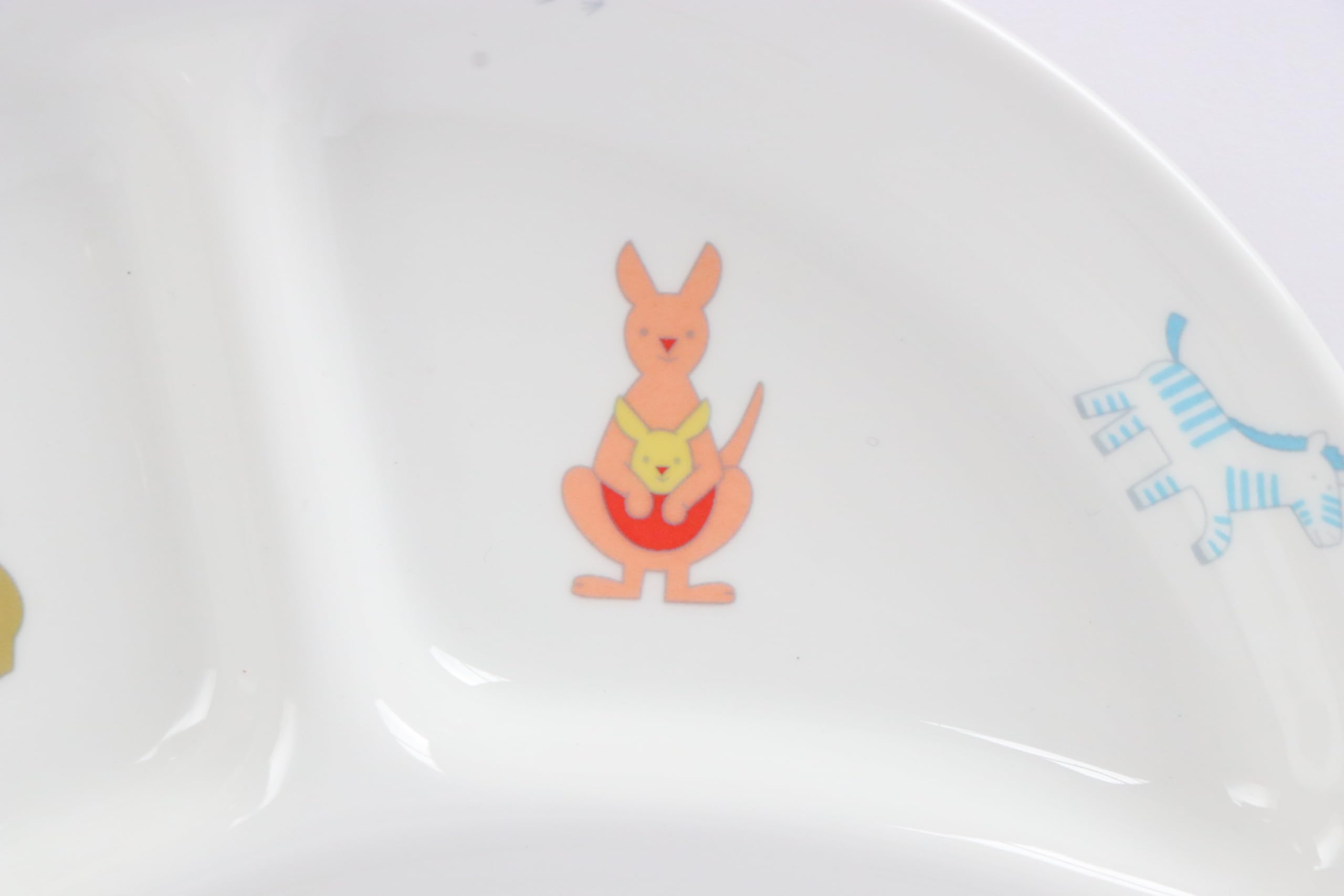 【22cm 3つ仕切りのランチプレート】まるくぱーじゅ(公式) 水切れが良い 割れにくい 子ども食器 食洗機 電子レンジ 保育園給食 陶磁器 強化磁器 動物柄 220SD (さふぁり)