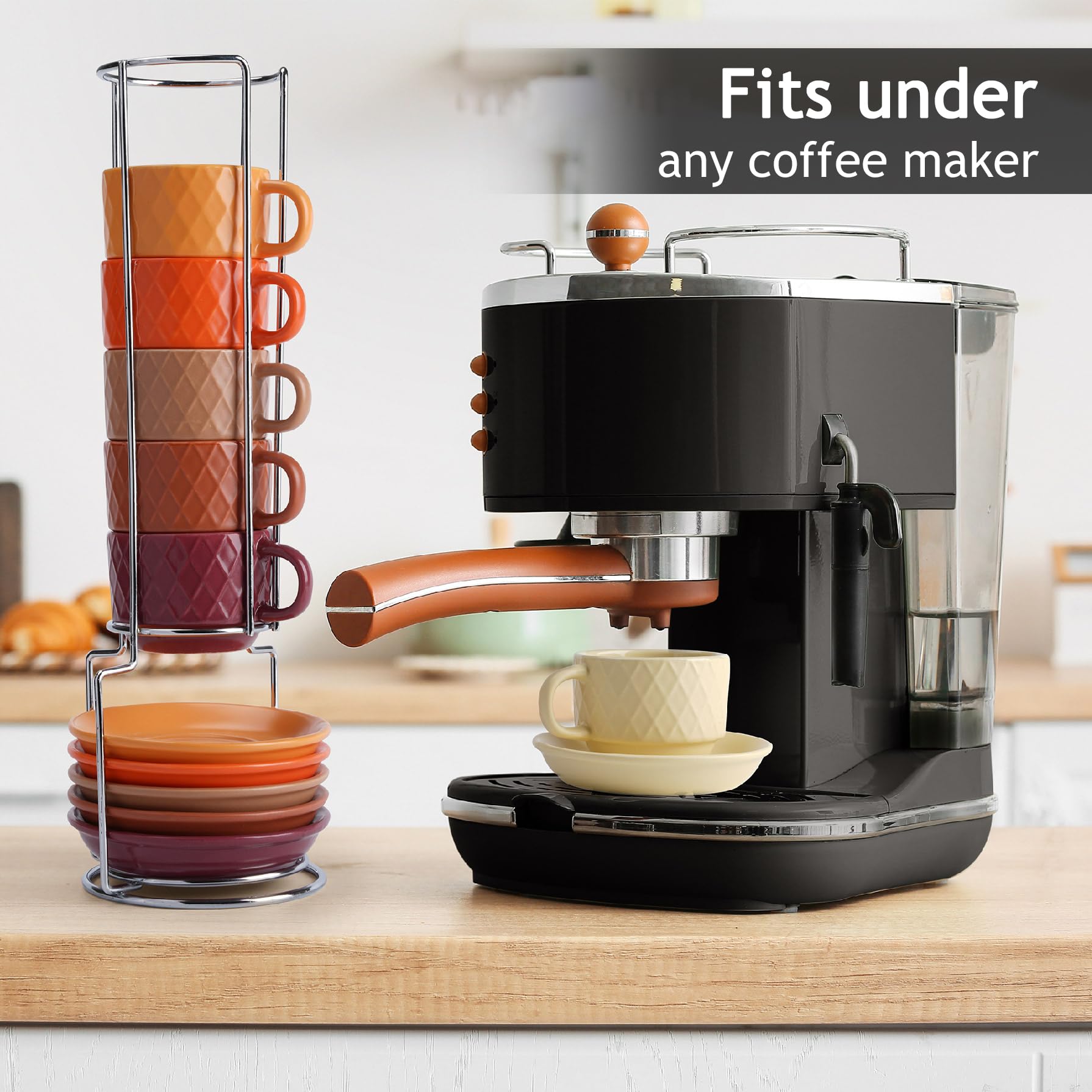 セット内容 - 75mlのカップ6個がセットになっています。「パルマノヴァ」シリーズのカップは、6色の組み合わせでお楽しみいただけます。さらに、メタルホルダーと6枚のソーサーも付いています。エスプレッソカップは、日常使いはもちろん、クリスマスや誕生日などの贈り物にも最適です。