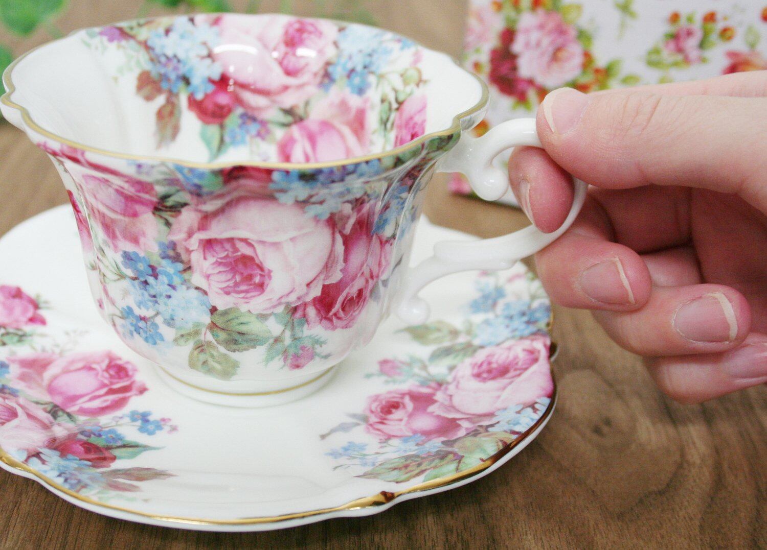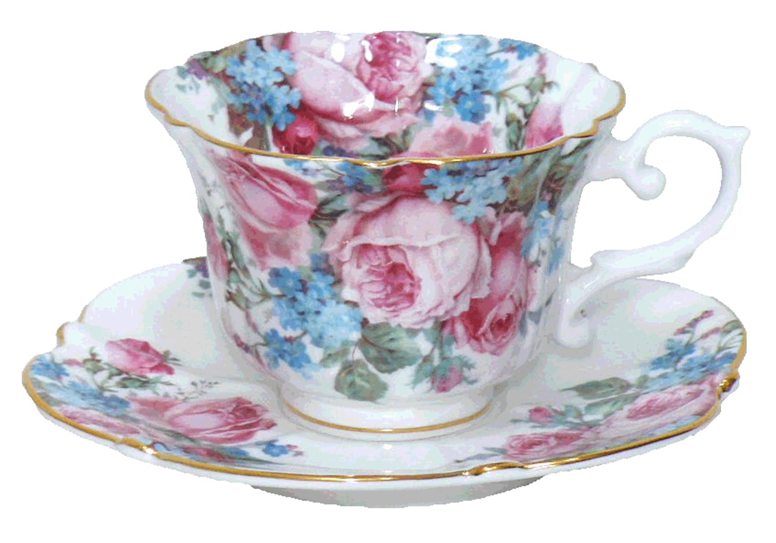 【特価セール】ロイヤルアーデン コーヒー ティー カップ ソーサー セット 陶器 電子レンジ対応 ボーンチャイナ 240ml 花柄 薔薇 ブルー 37100