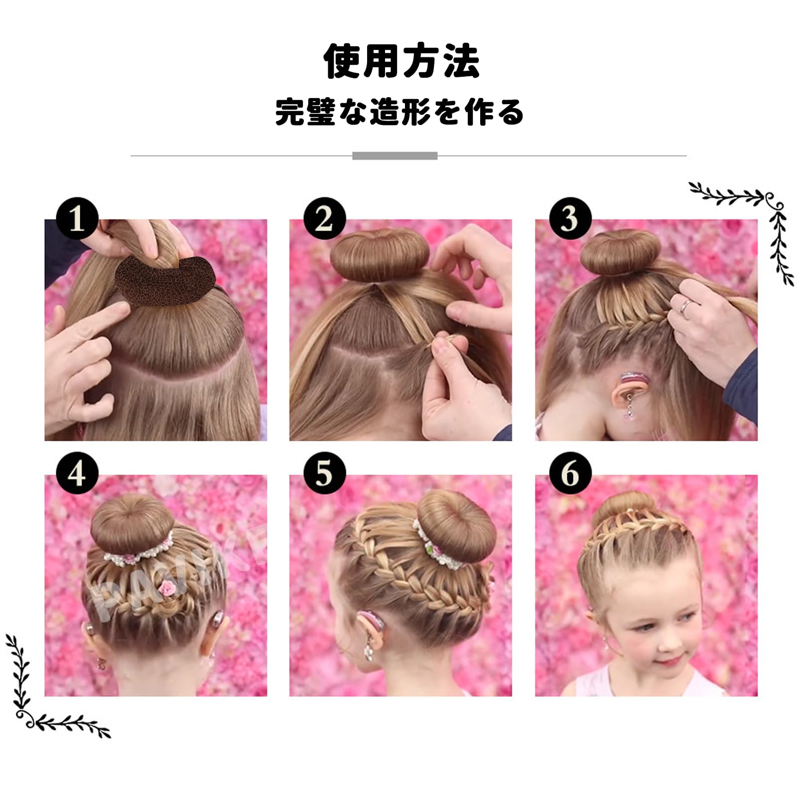 ?【使いやすい】まず、髪をポニーテールに結び、ヘア・ディスペンサーに髪を入れます。 髪根元に髪を巻きつけ、お団子ヘアメーカー ドを均等に覆う、最後にスポンジボール・ヘッドディスクをボビーピンやボビーピンで髪に固定するだけです。