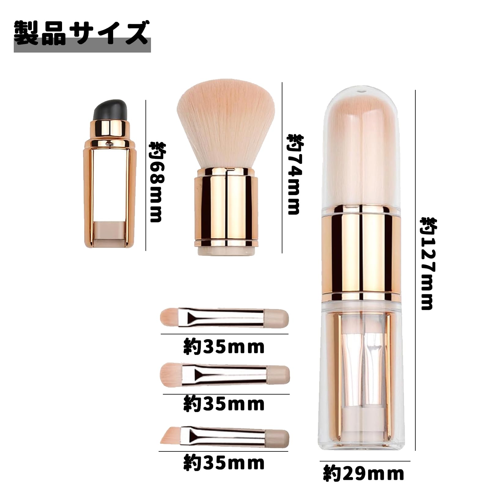 【商品内容】サイズは13*3cmで、重さは60gです。ブラシ5本セット(パウダーブラシ、シリコン製リップブラシ、ディテールブラシ、アイシャドウブラシ、アイライブラシ)、人工繊維、プラスチック、シリコンで作られており、小さくて便利で持ち運びが簡単です。