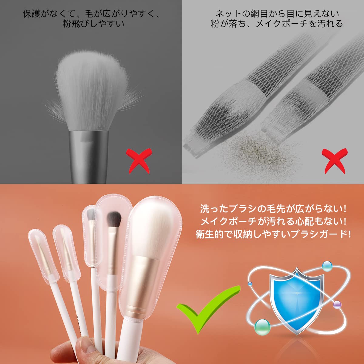 【毛先保護】毛先をブラシカバーに収めて、平日目に見えない小さな汚れや細菌が繁殖にくくなります。無駄になった化粧粉がカバーに付着しやすいので、毛先の状態がわかりやすくなります。