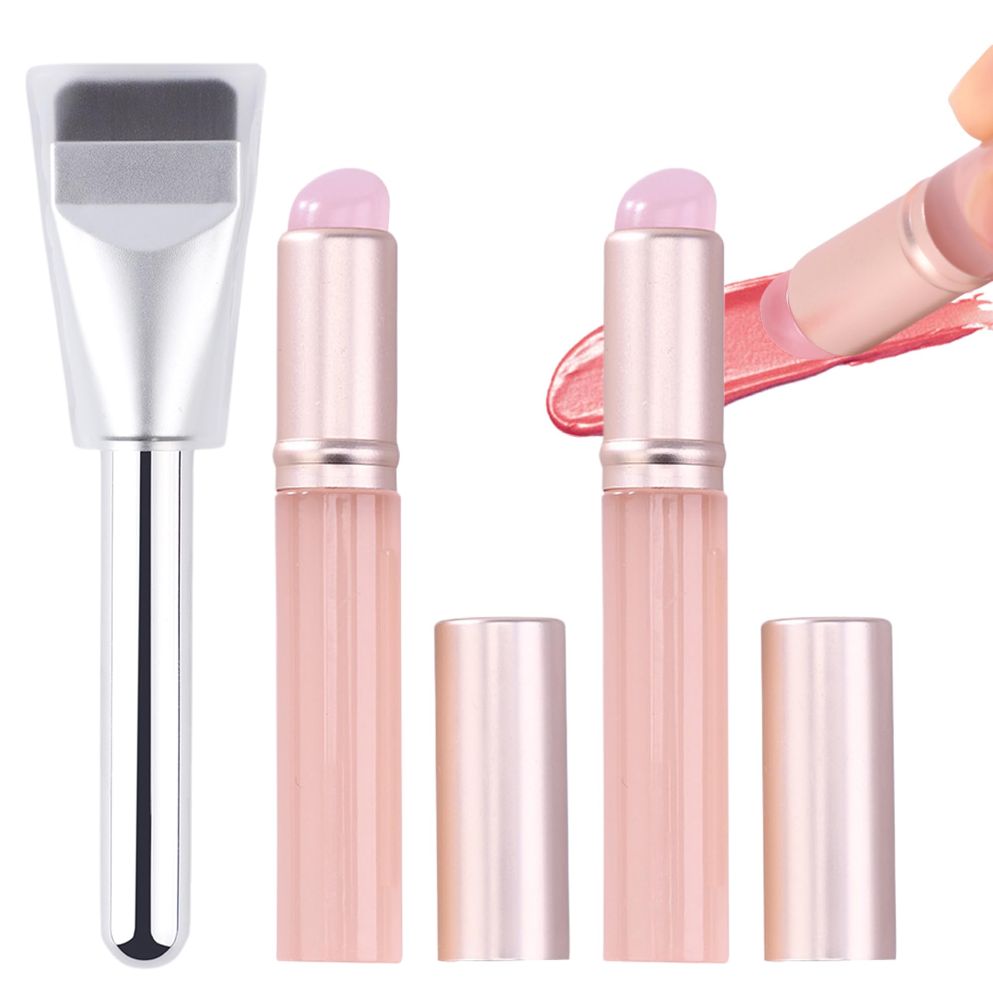 【在庫処分】DELUXEFOX リップブラシ ファンデーションブラシ 3点セット シリコン メイクブラシ 口紅ブラシ 平らな化粧ブラシ コンシーラーブラシ 肌に優しく カバー付き 持ち運びに便利 旅行 携帯用 (ピンク)