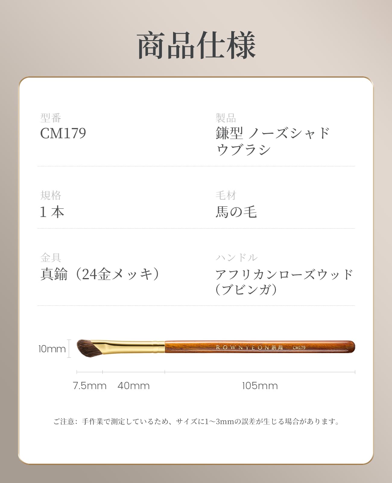 ROWNYEON ノーズシャドウブラシ 鎌型 斜め 天然毛 メイクブラシ 赤漠シリーズ 使いやすい プロ仕様 肌に優しい 持ち運び便利 軽量 柔らかい 初心者向け CM179