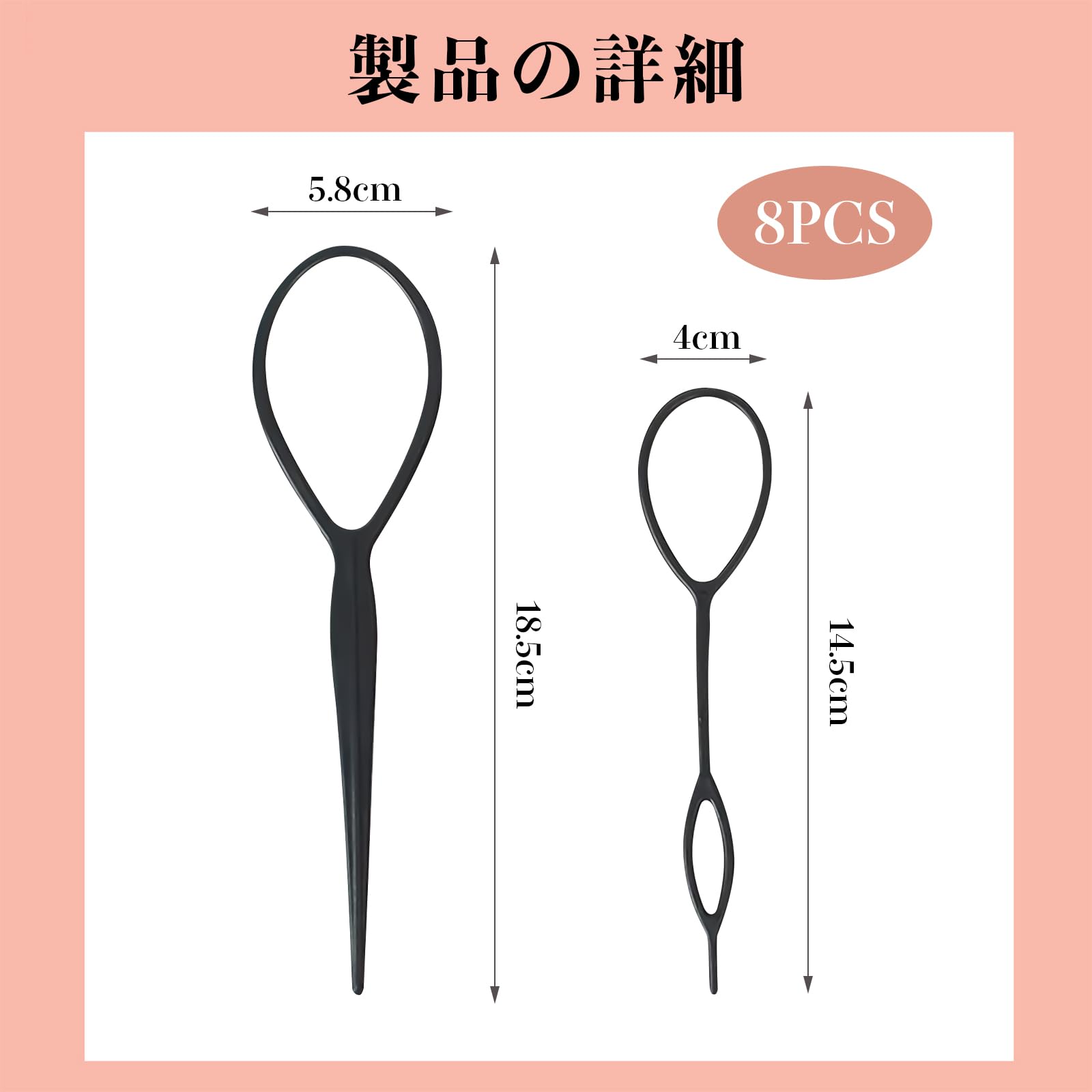 nalaina ヘアアレンジスティック ヘアスタイリングツール ヘアアレンジ グッズ アレンジスティック お団子 髪造形 ヘアデザイン くるりんぱ 多機能 プロ 初心者 サロン 美容院 レディース 家庭用 業務用 大・小 各1点入り 8セット ブラック