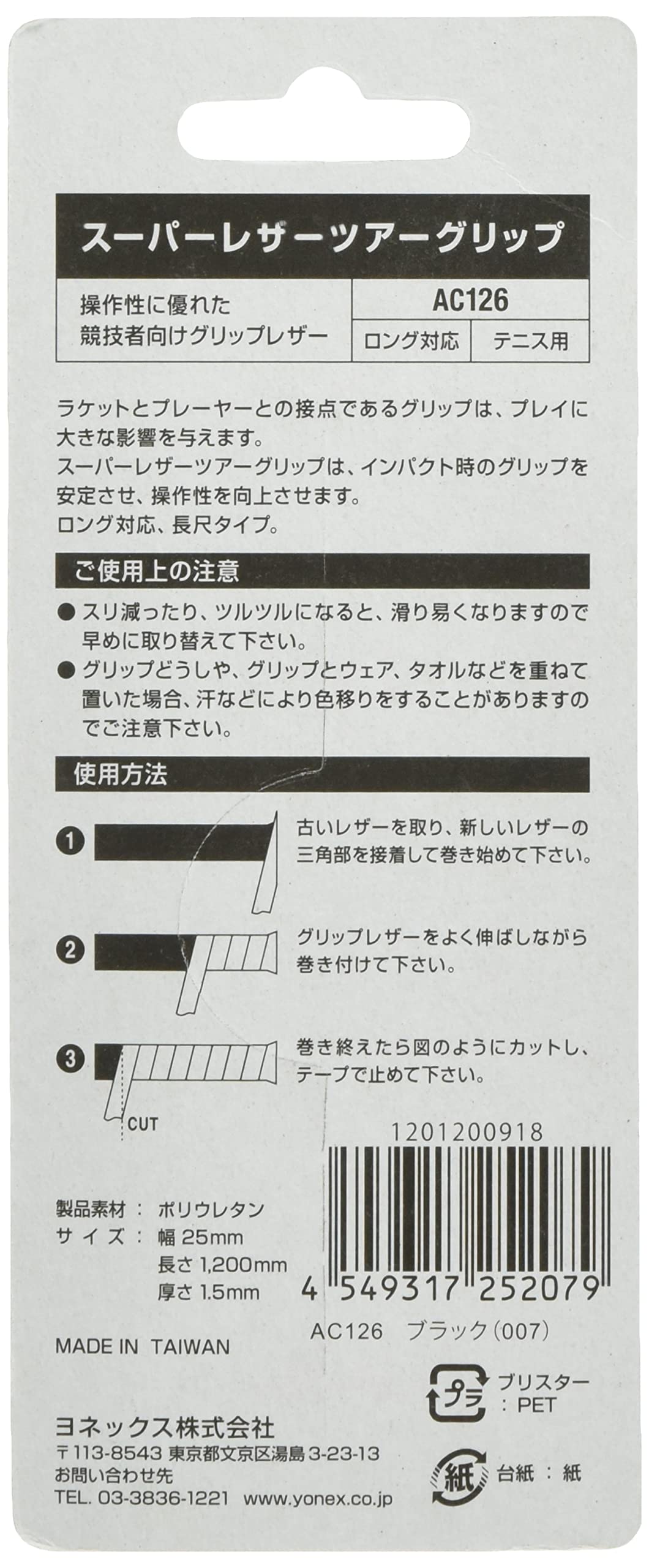 【在庫セール】YONEX(ヨネックス)テニス グリップテープ シンセティックレザー エクセルコアグリップ AC126 ブラック
