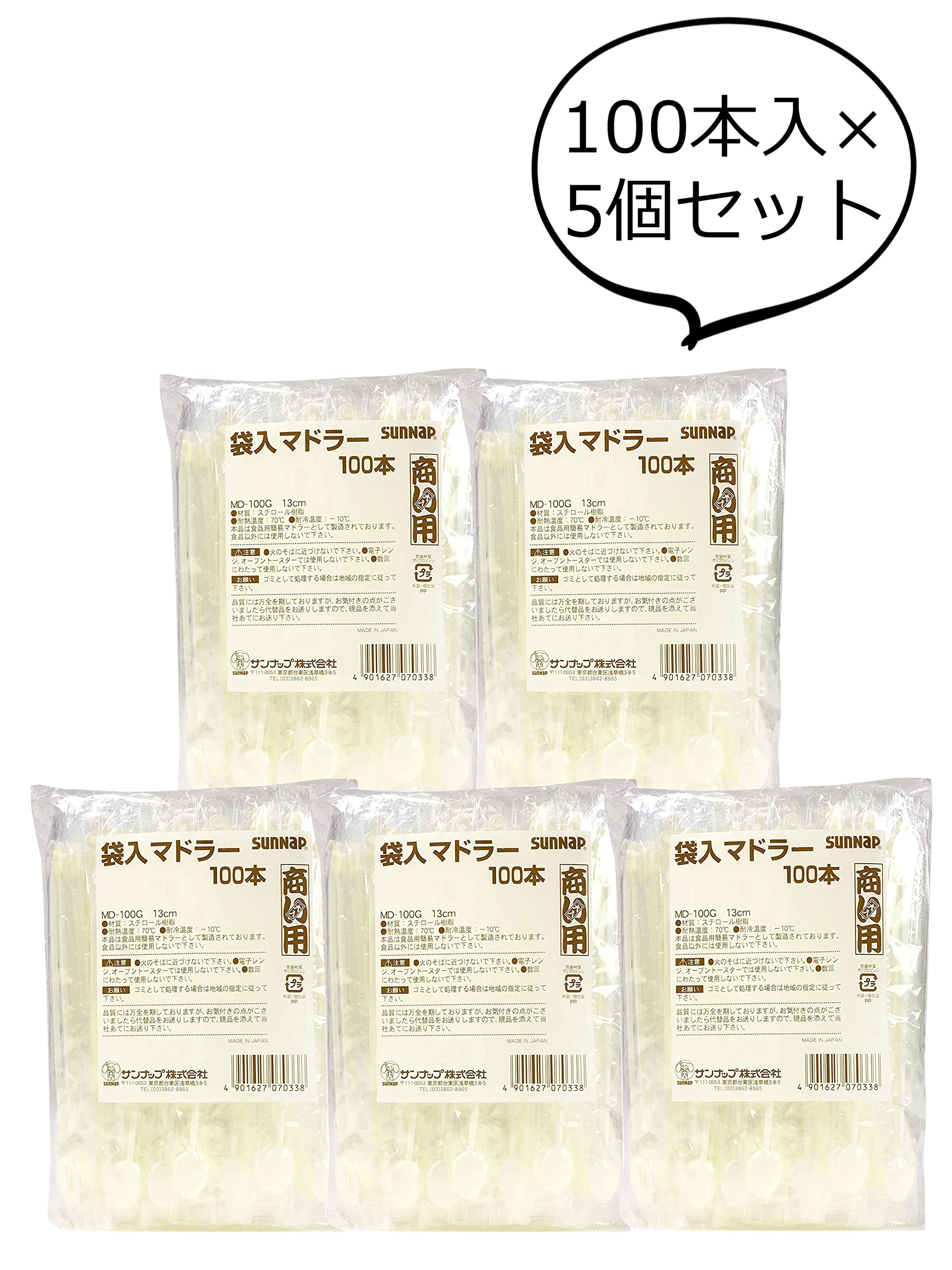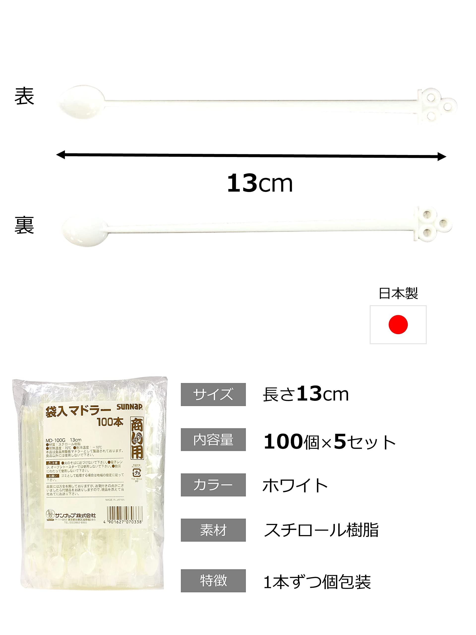 【数量限定】サンナップ 使い捨て マドラー 個包装 100本入×5セット 商い用 業務用 アイボリー