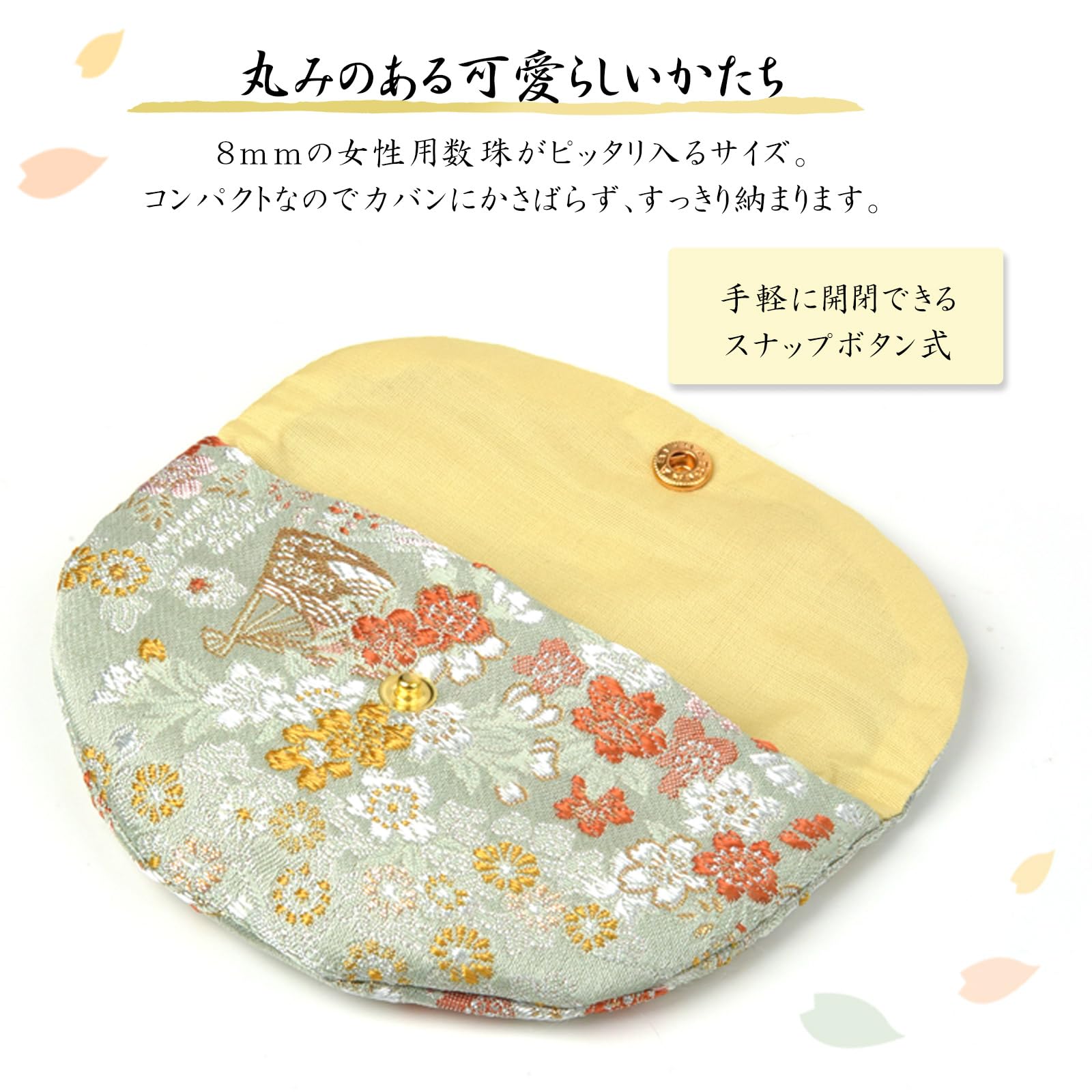 数珠袋 女性用 数珠入れ 半月形 西陣織 金襴 女性用 念珠袋 念珠入れ 西陣 日本製 京都 半月数珠袋 (小花緑)