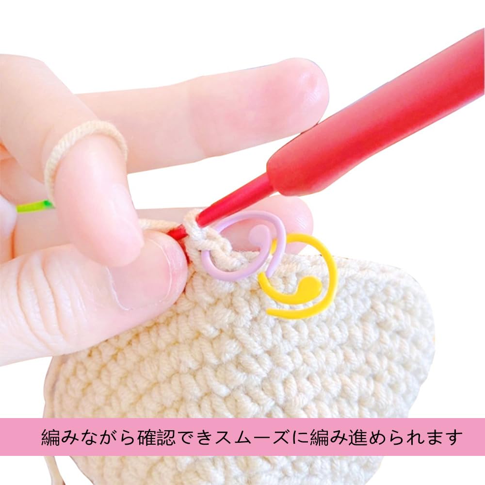 【小さくて実用】かぎ針は使用中に落ちたり抜けたりしにくい、コンパクトで持ち運びに便利です、リングデザインで、使いやすく便利です。カラフルなデザインのマーカーが揃っており、作業を楽しく彩ります。