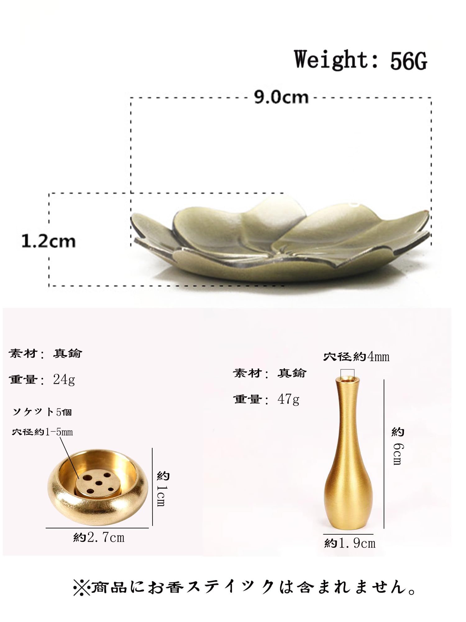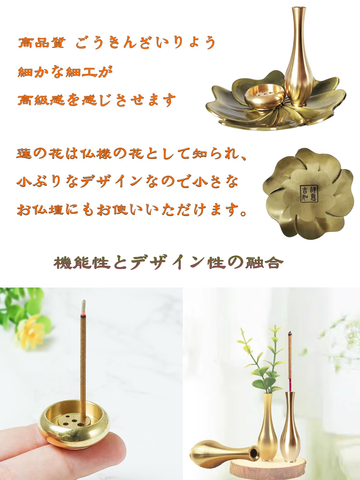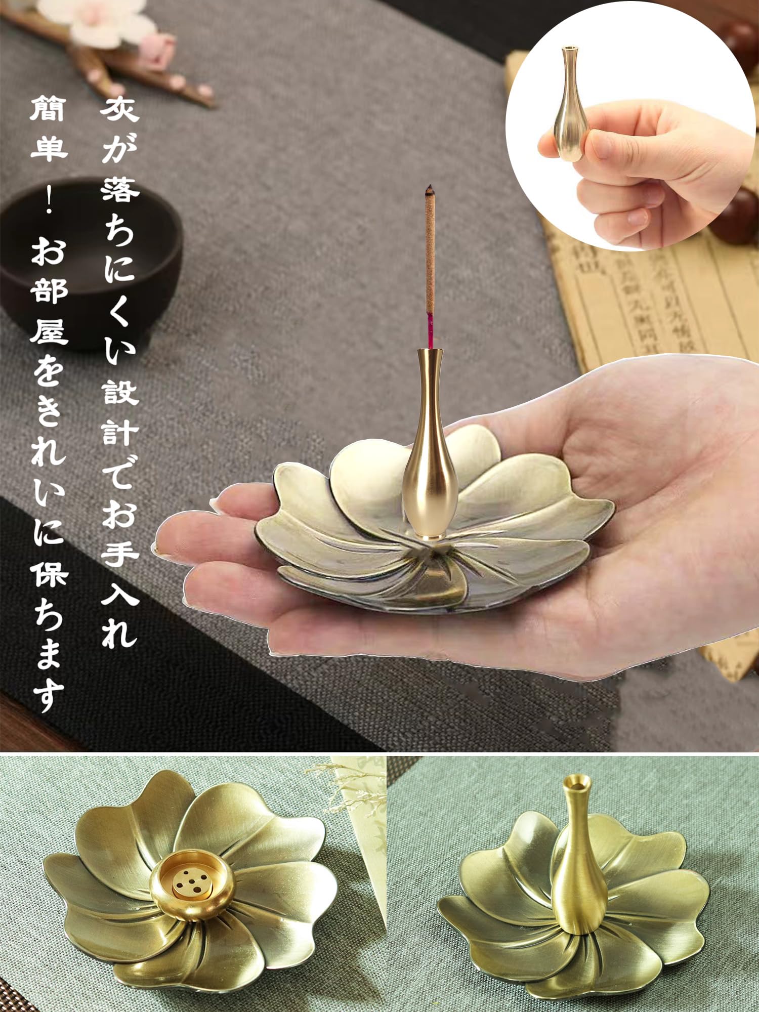 【上質な材質】 真鍮を採用しており、他社の合金製の線香立てより質がよくて、高級感があります。また、表面は滑らかで、灰の片付けやすいです。真鍮製なので、他の素材より重さがあり、安定性がよくて、線香をよく支えられます。