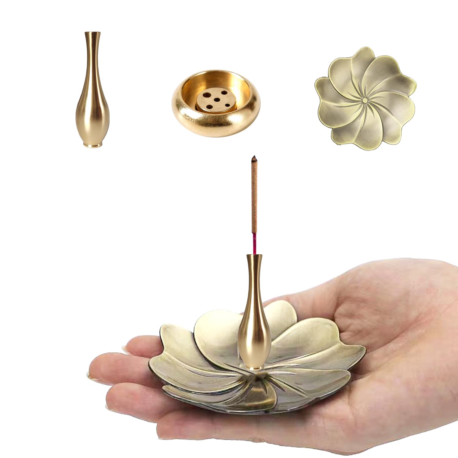GRTUFOBA お香立て 3個セット 可愛い 線香立て 小さい 香炉 香皿 真鍮 仏壇用 ペット用 お香立て 御洒落 持ち運び便利