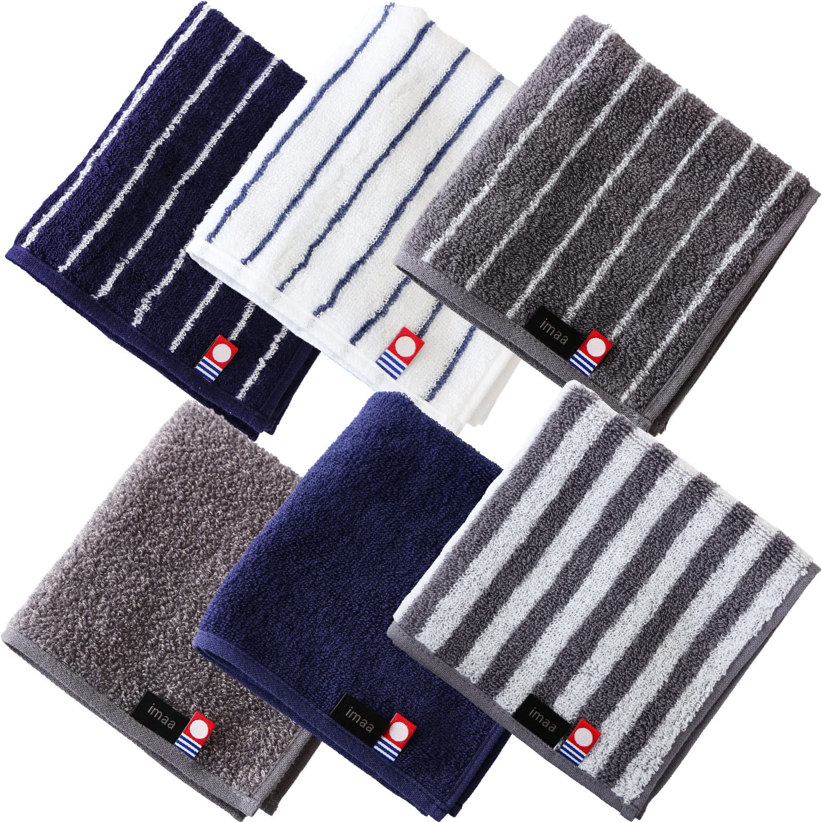 imaa(アイマ) 今治タオル 認定 ハンドタオル タオルハンカチ 6枚 セット 日本製 綿100% 真空圧縮パック Dアソート6枚