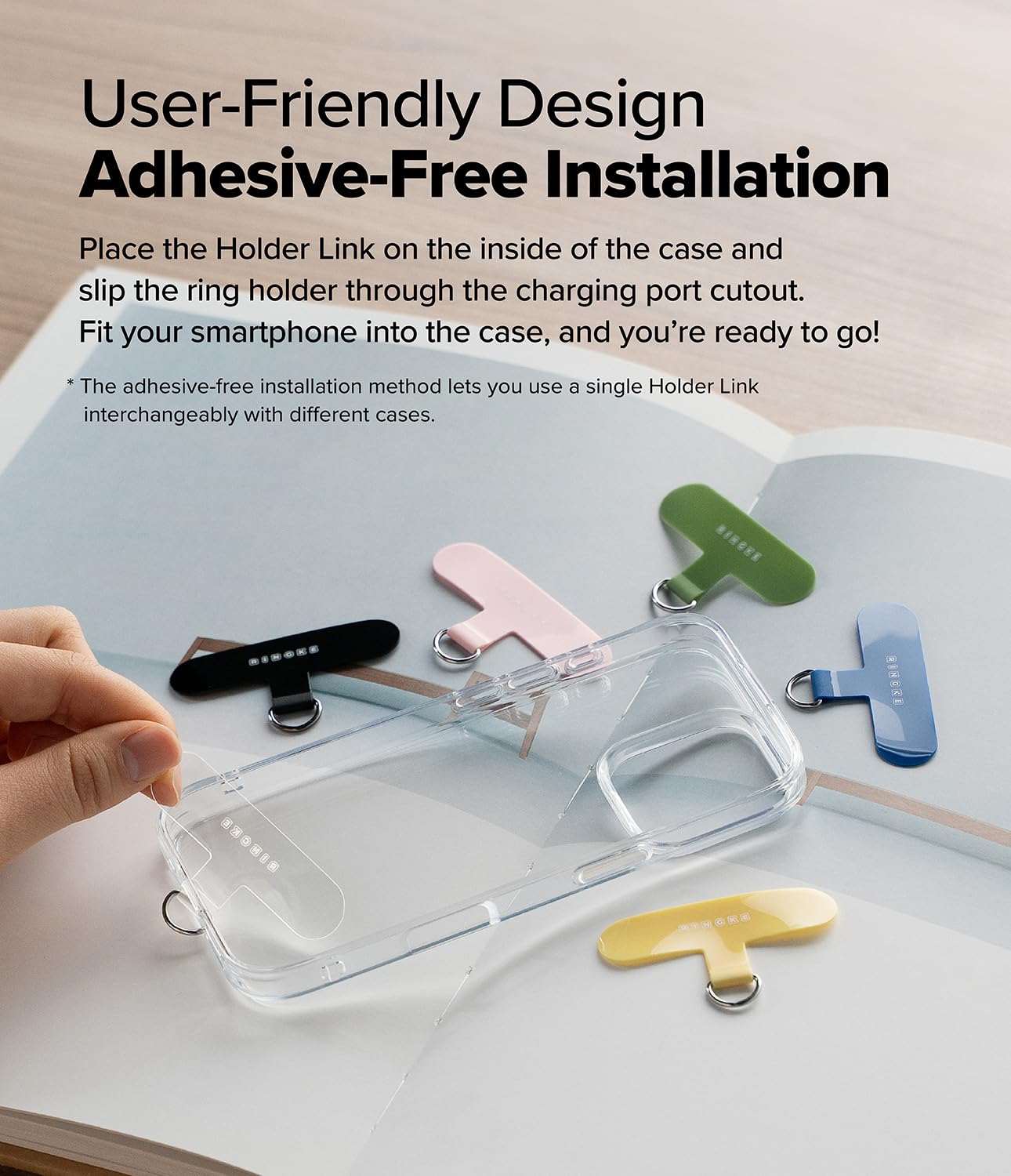 【新着商品】【Ringke】Holder Link Flow Finger Ring ストラップ TPU+亜鉛合金+ポリエステル素材 落下防水 紛失防止 (タグパッチ+ストラップ 1SET)