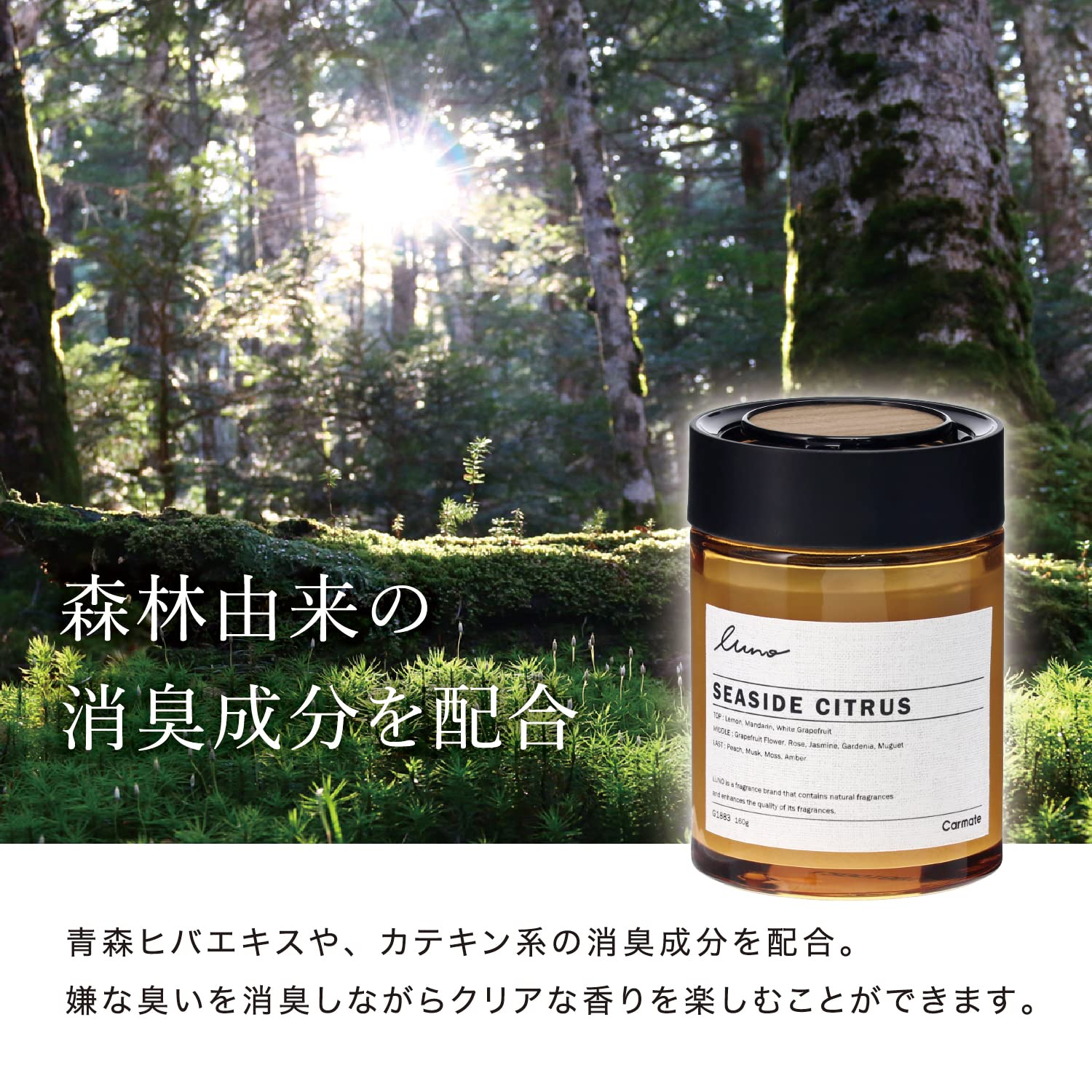 【森林由来の消臭剤配合】青森ヒバエキスや、カテキン系の消臭成分を配合。自然の力で嫌な匂いを消臭し、クリーンに香りを楽しむことができます。【内容量160g】高い揮発力でも大容量なので長持ちします。【持続期間】約60日間香りが長持ちします。※持続期間は使用環境によって異なります。