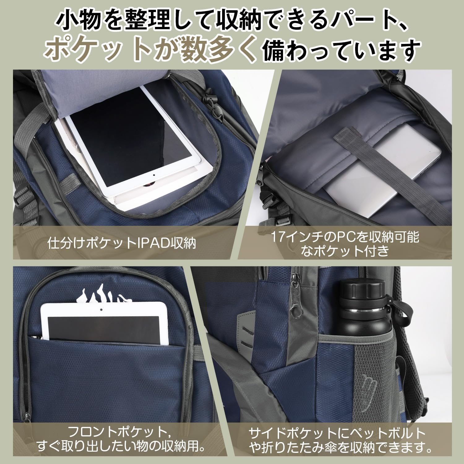 [Vulmoon] リュック 大容量 メンズ 60L 登山 カジュアル バックパック 防水 軽量 防災リュック アウトドア リュックサック おしゃれ 出張 通勤 海外 旅行 キャンプ用品 スポーツジム