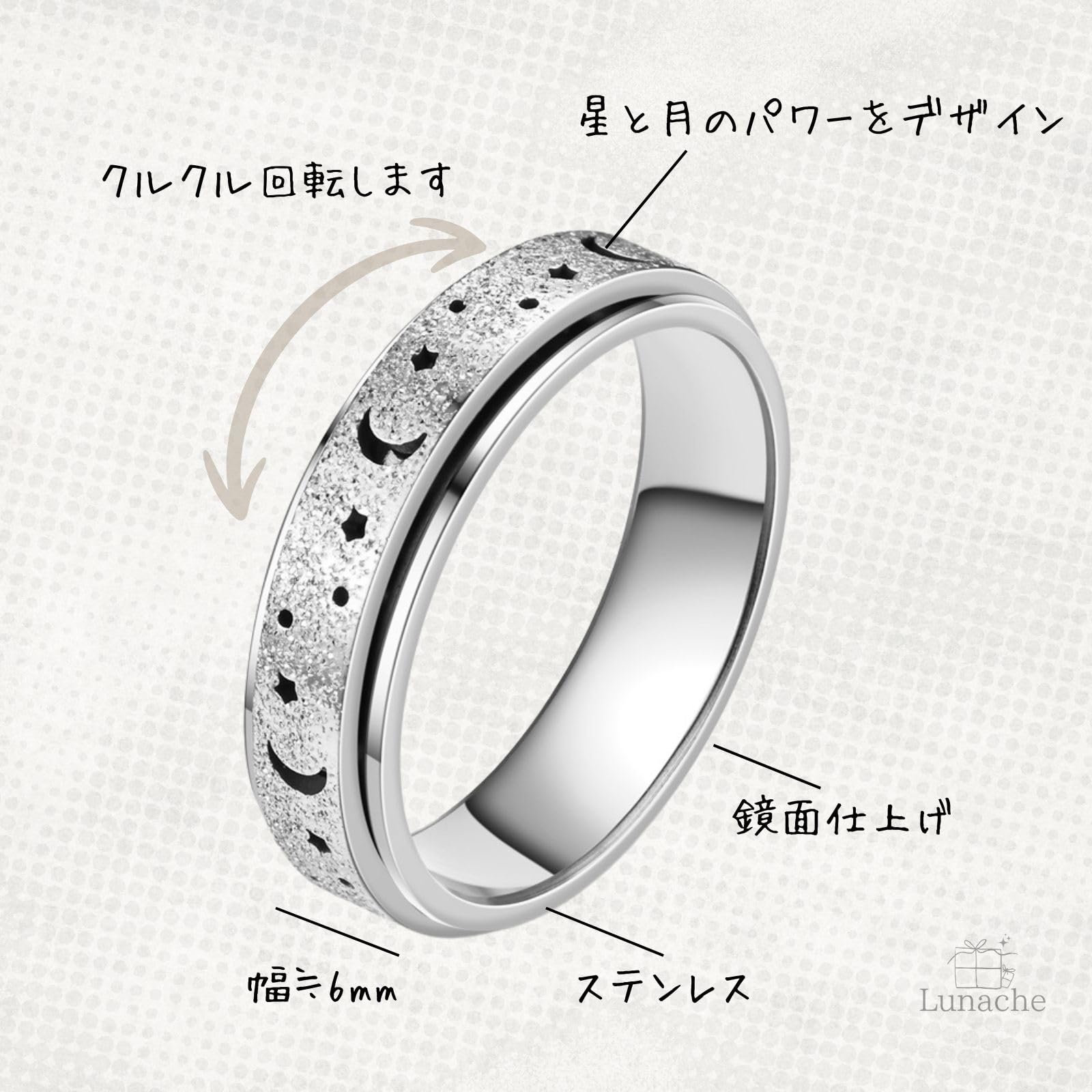 Lunache ?ルナシェ? ストレス解消 フィジェットリング 不安 緩和 癖対策 リラックス ステンレス 指輪 大きいサイズ 親指 対応 Fidget フィジェットトイ 【? *サイズは海外表記のため要確認* ?】S8