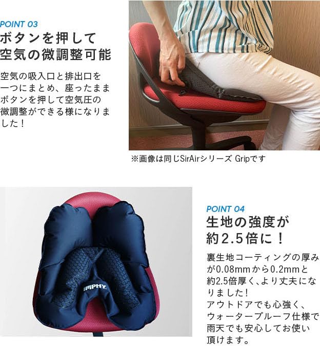 IMPHY Sit Airに骨盤をしっかり立てる機能と体圧分散機能にフォーカスしたマックスが登場!生地の強度をアップし、ポンプも従来品からアップグレードしました!