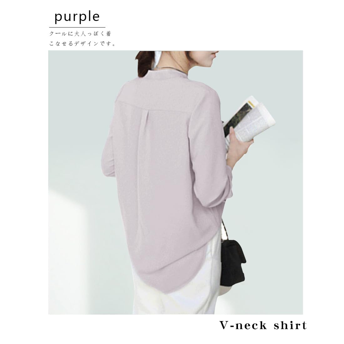 [Ladyangel] ブラウス シャツ レディース Vネック 長袖 トップス フォーマル 体型カバー 着痩せ 着回し力 きれいめ シンプル プルオーバー カジュアル 通勤 OL オフィス 春 秋