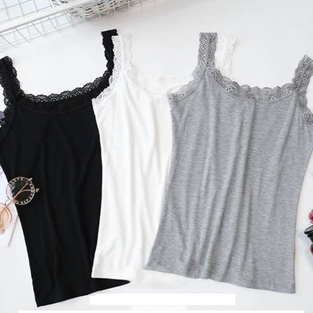 【数量限定】[LIKENNY] キャミソール レース花柄 ショート丈 インナートップス 無地 伸縮性 ノースリーブ レディース 柔らかい 肌触り良い タンクトップ
