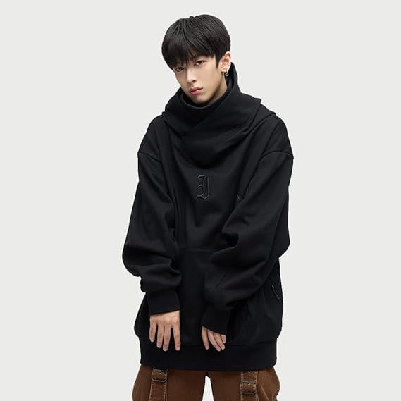 首元はハイネックトなって、袖口と裾はリブ仕様で、寒い日の保温に良く、男性の格好いいスタイリングを実現できるフード付きパーカーです。