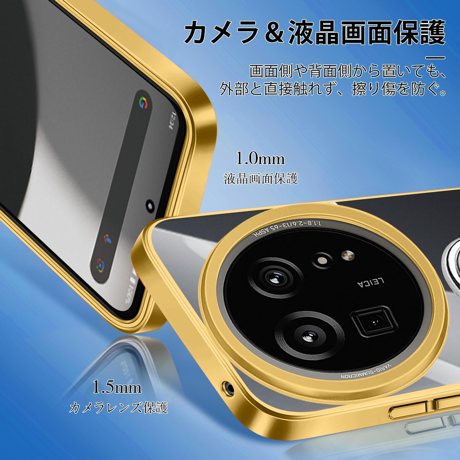 【安心保護】前面と背面カメラ部のフチを高く設計し、液晶画面とカメラレンズをキズから保護します。